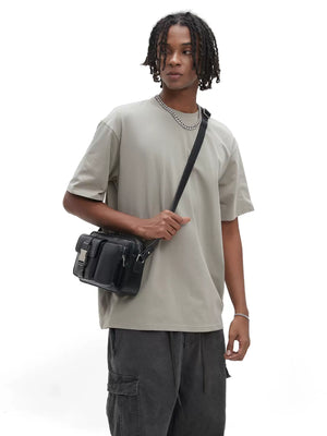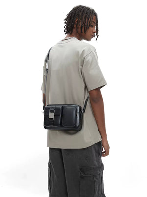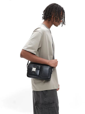 Men's camera bag - designer messenger bag, trendy brand, techwear style, leather shoulder/crossbody bag for men