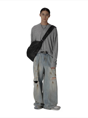 Retro distressed wasteland style bag large capacity pleated crossbody bag niche style lazy and relaxed shoulder bag for men and women