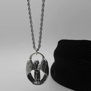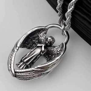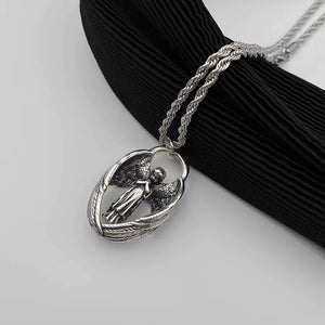 retro guardian angel wing necklace - men's antique silver wing sweater chain - unique design unisex pendant