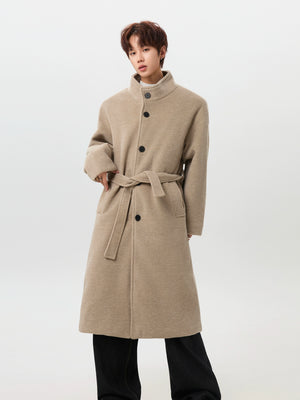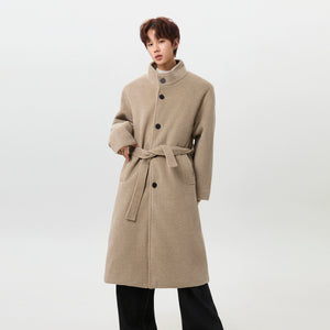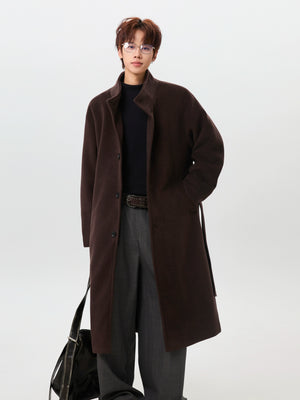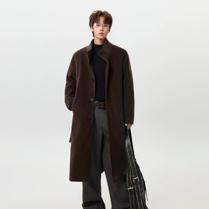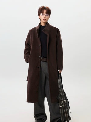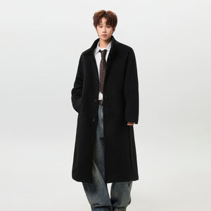 Retro medium and long heavy stand-up collar woolen coat for men and women, autumn and winter high-end couple's knee coat