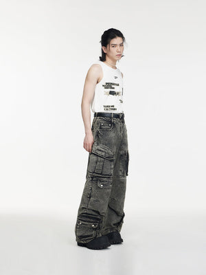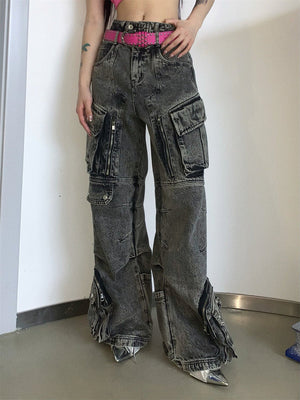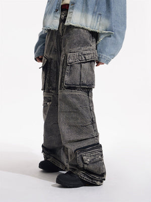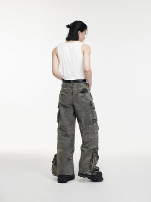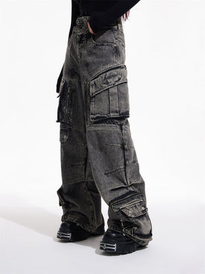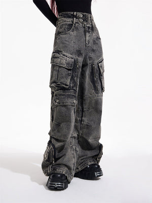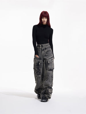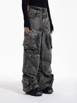 [PEOPLESTYLE] Multi-pocket wide leg casual jeans st2096
