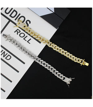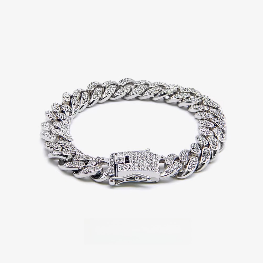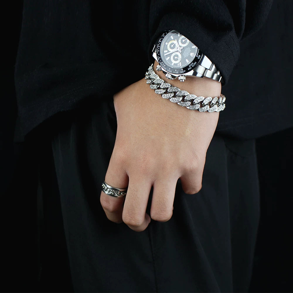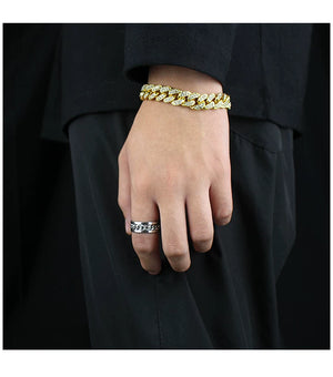 Original design diamond-accented cuban link bracelet - men's trendy streetwear hip hop style SIN076