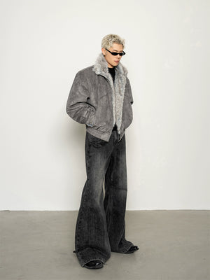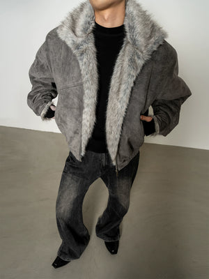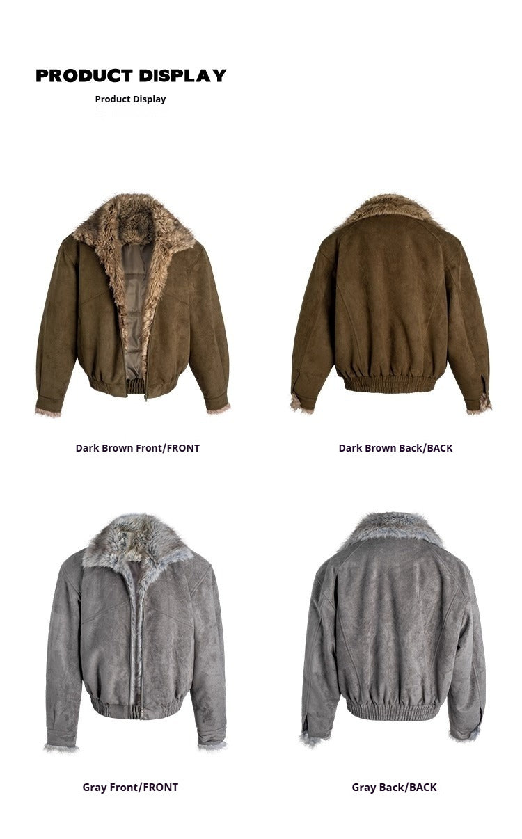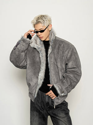 American heavy suede suede imitation fox hair cotton jacket, loose and wide shoulder padded thick coat in winter