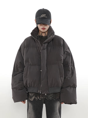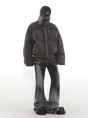winter thickened stand-up collar short down jacket men's trendy high-end American retro couple cotton jacket