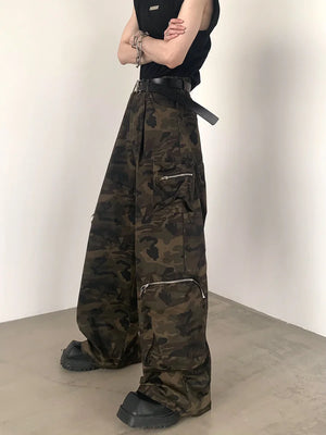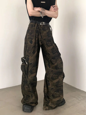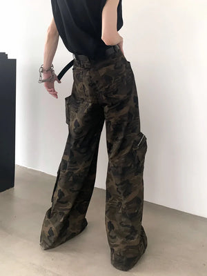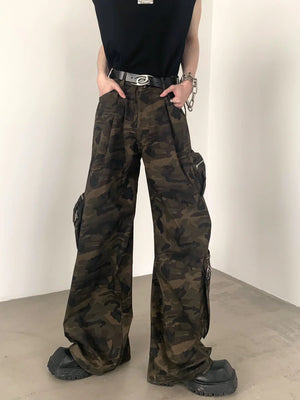 [AUTUMNWIND] CAMOUFLAGE WIDE LEG POCKETS WORK PANTS ST912