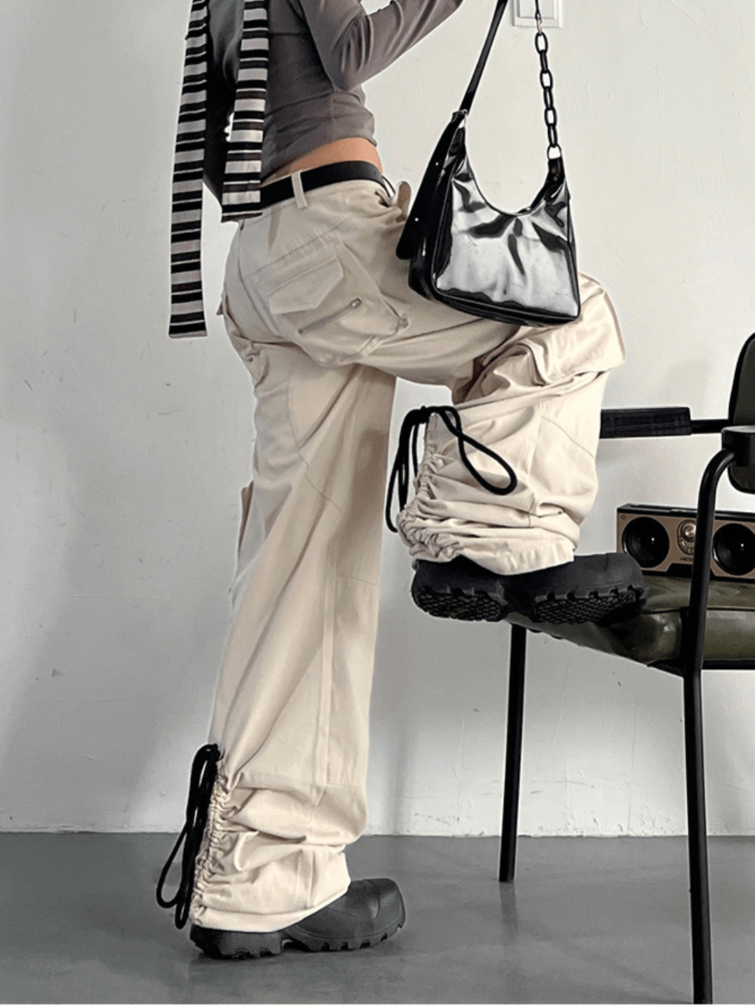 [CRAZY STUDIO] high waist casual loose wide leg pants st1829