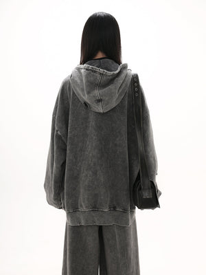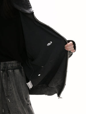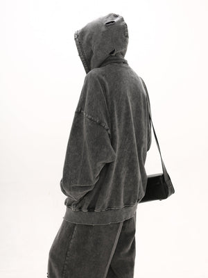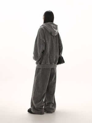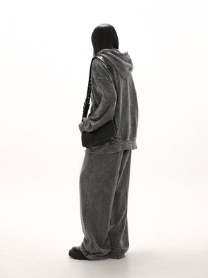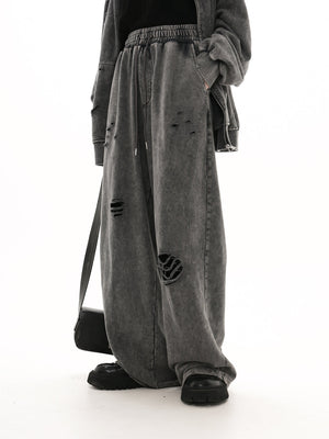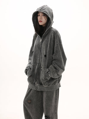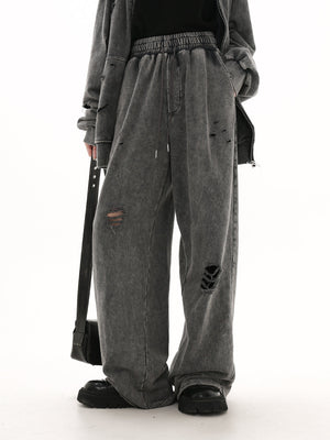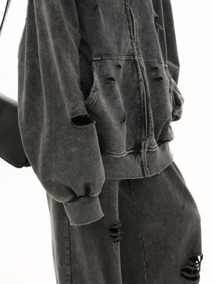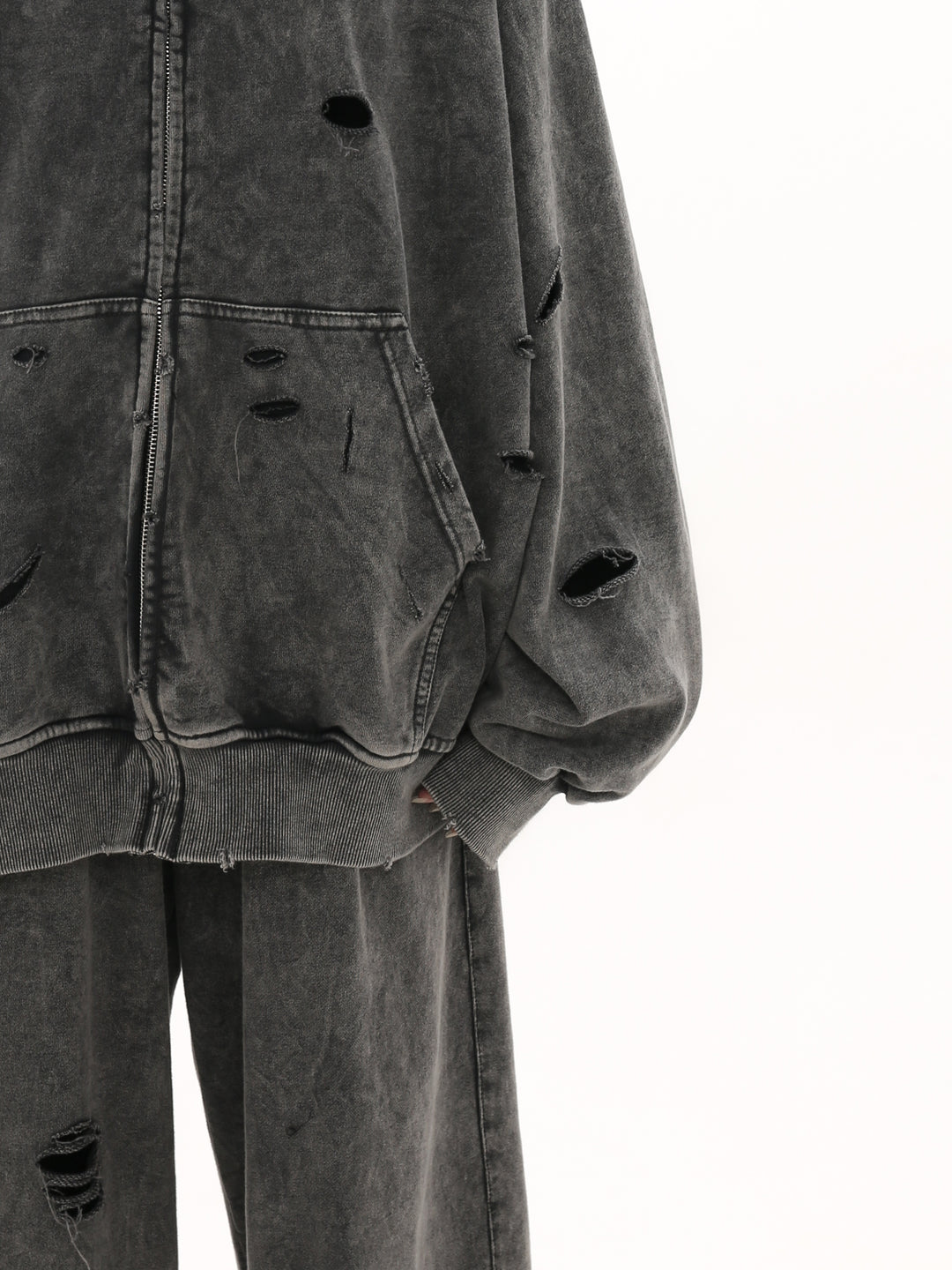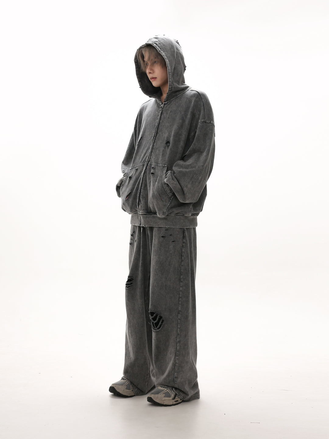 [GIBBYCNA] Damage Zipper Hoodie & Wide-leg Damage Sweatpants st2036