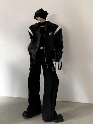 [AUTUMNWIND] BLACK COTTON THICKENED LEATHER JACKET ST951