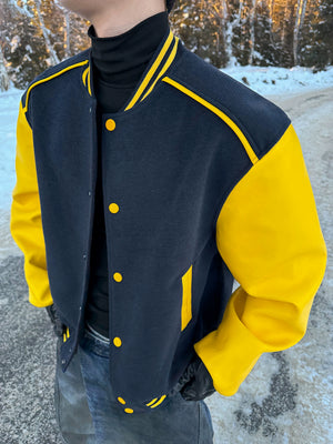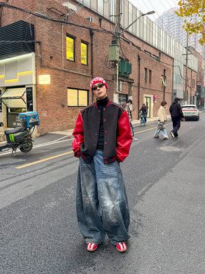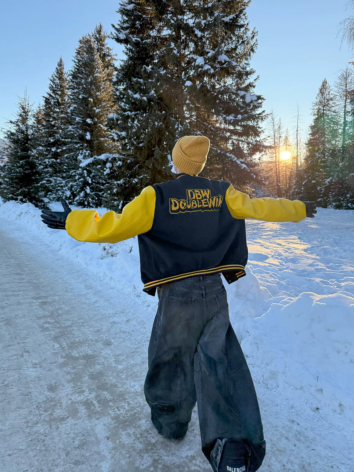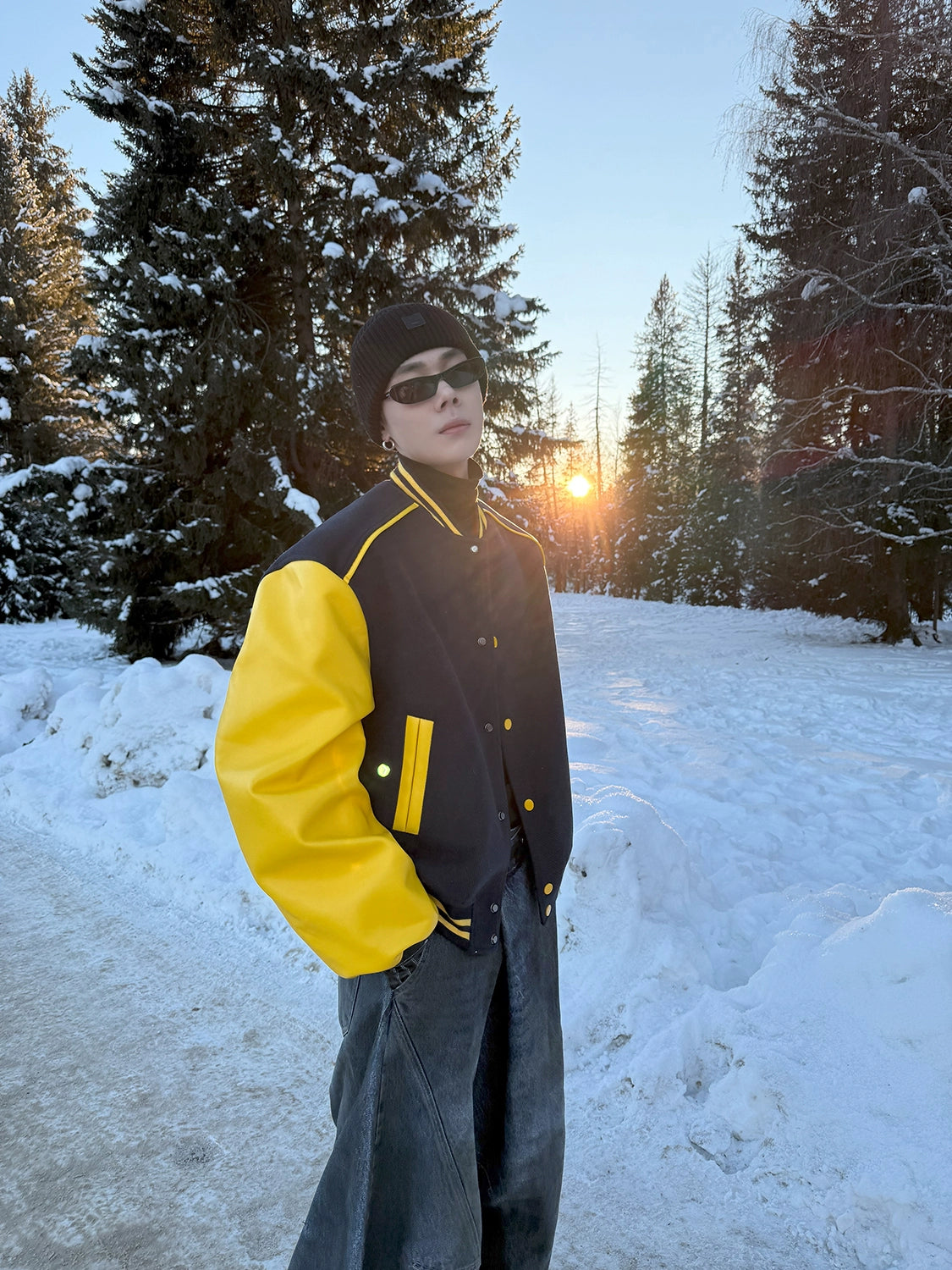 American contrasting leather baseball jersey men's personality silhouette wide shoulder short jacket jacket tide