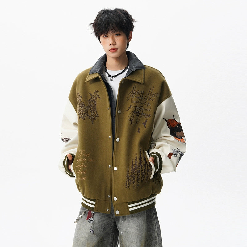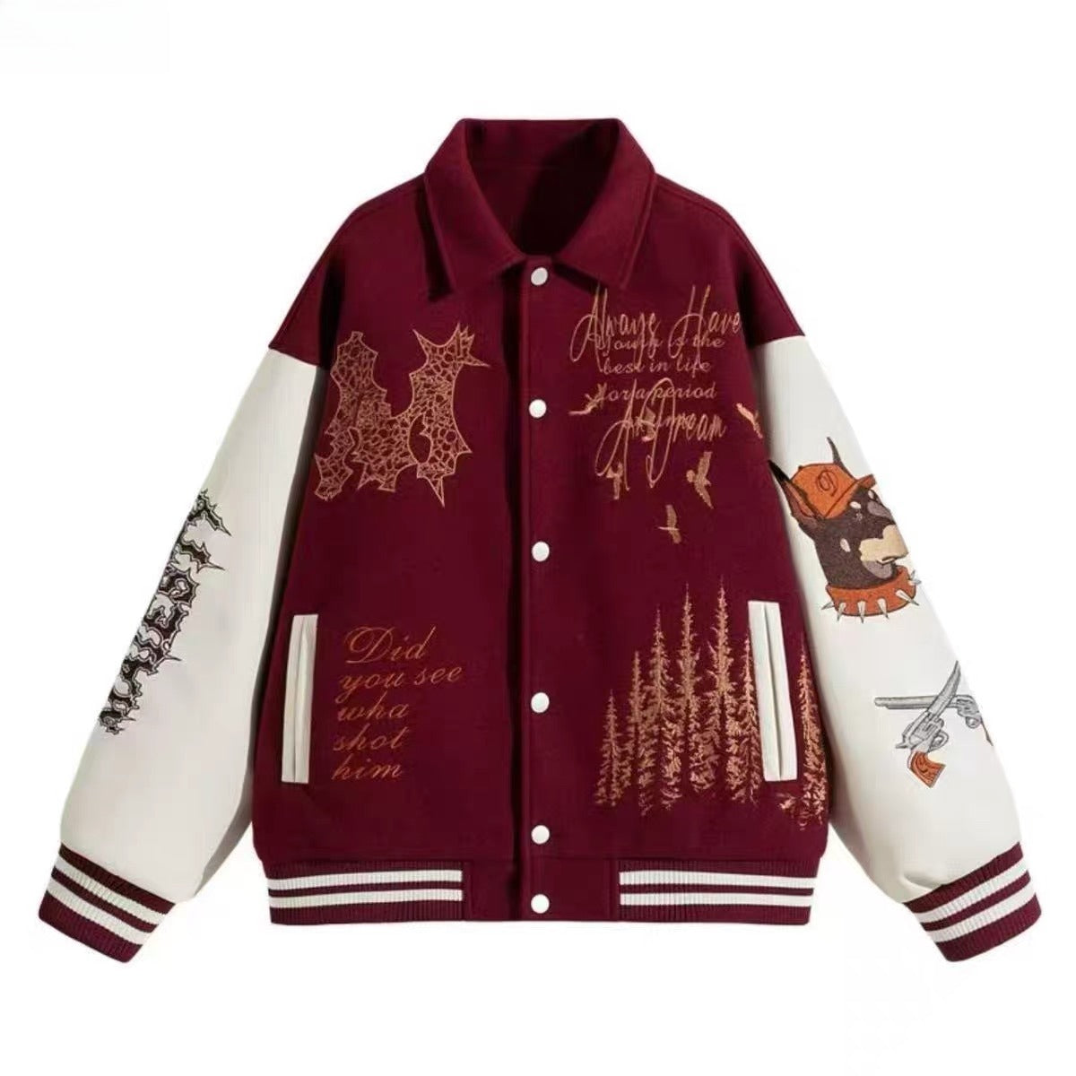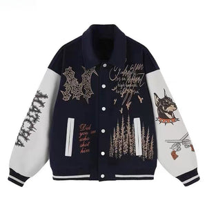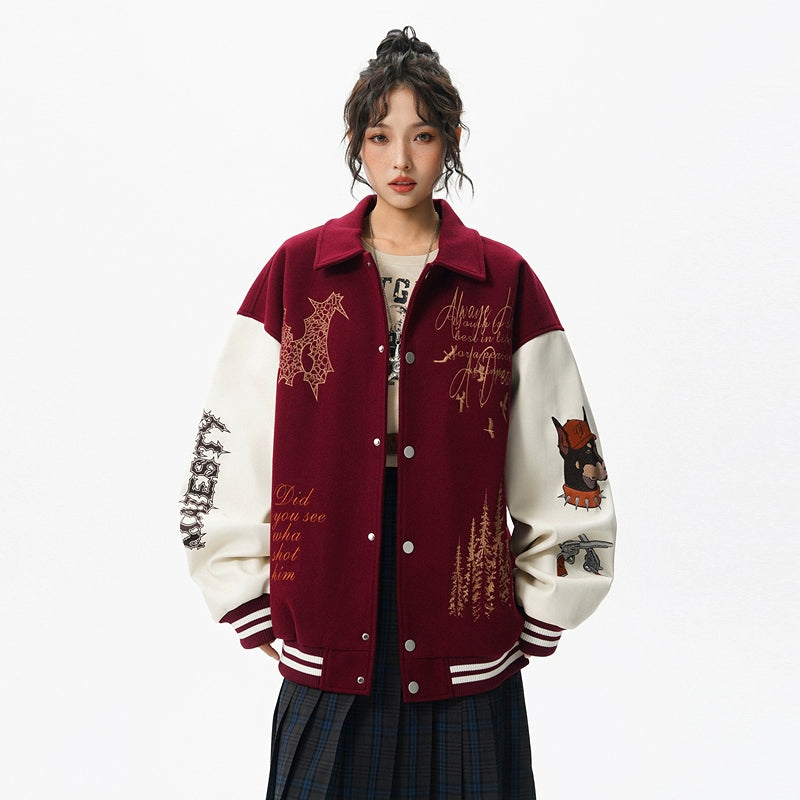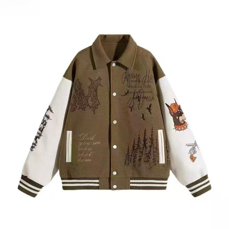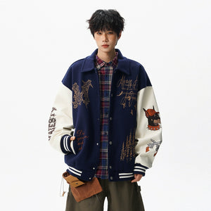 American heavy industry embroidery splicing contrasting color baseball jacket men's trendy high street couple lapel jacket