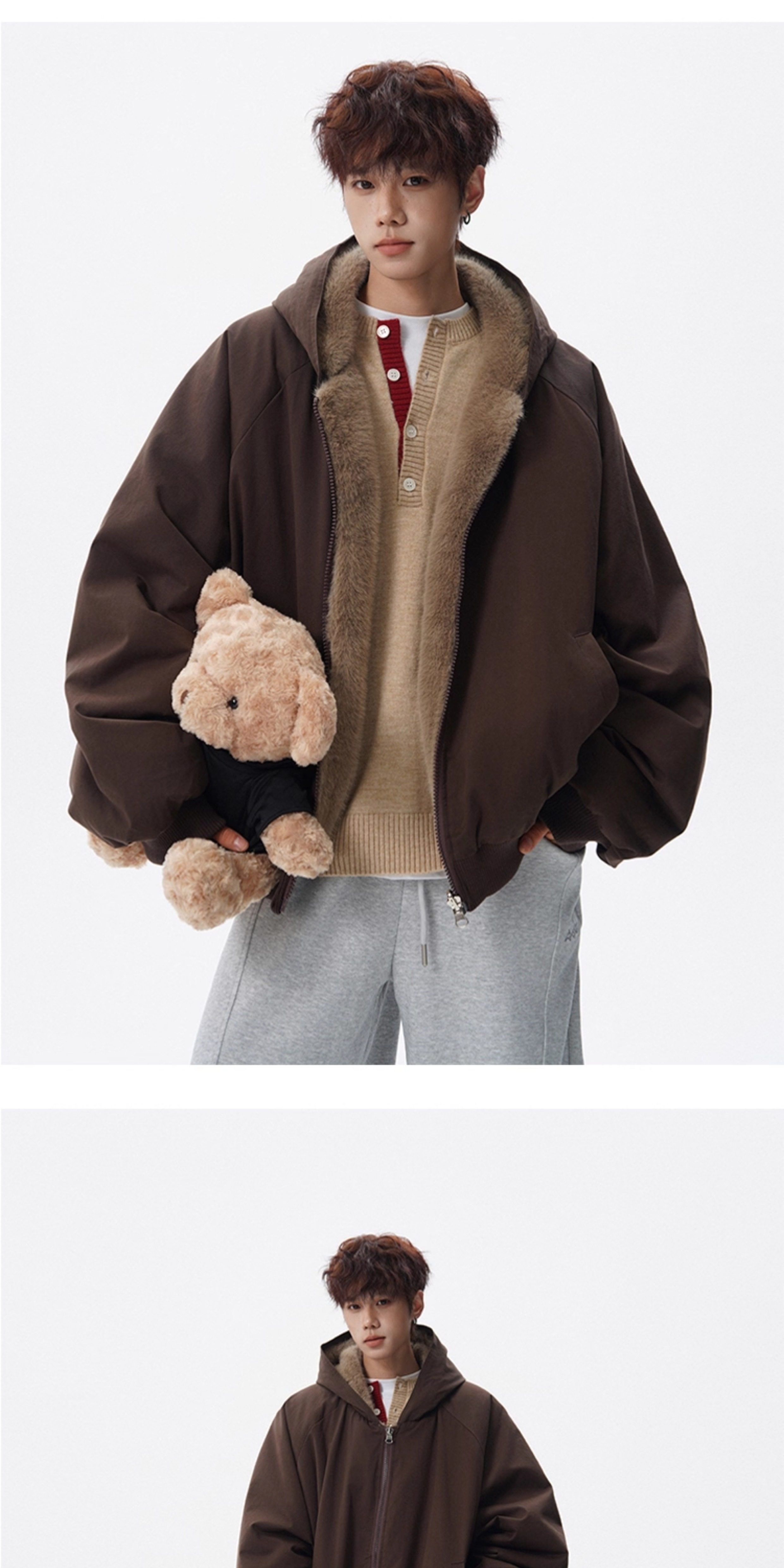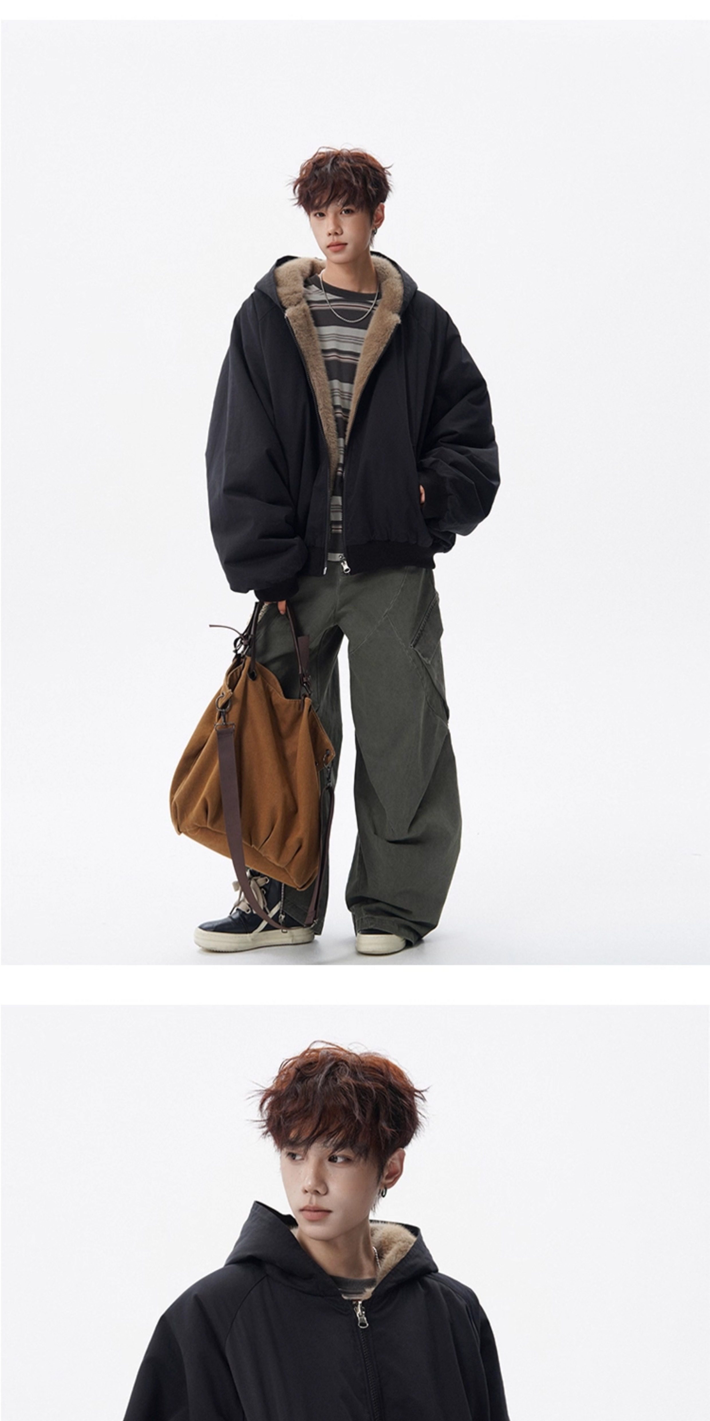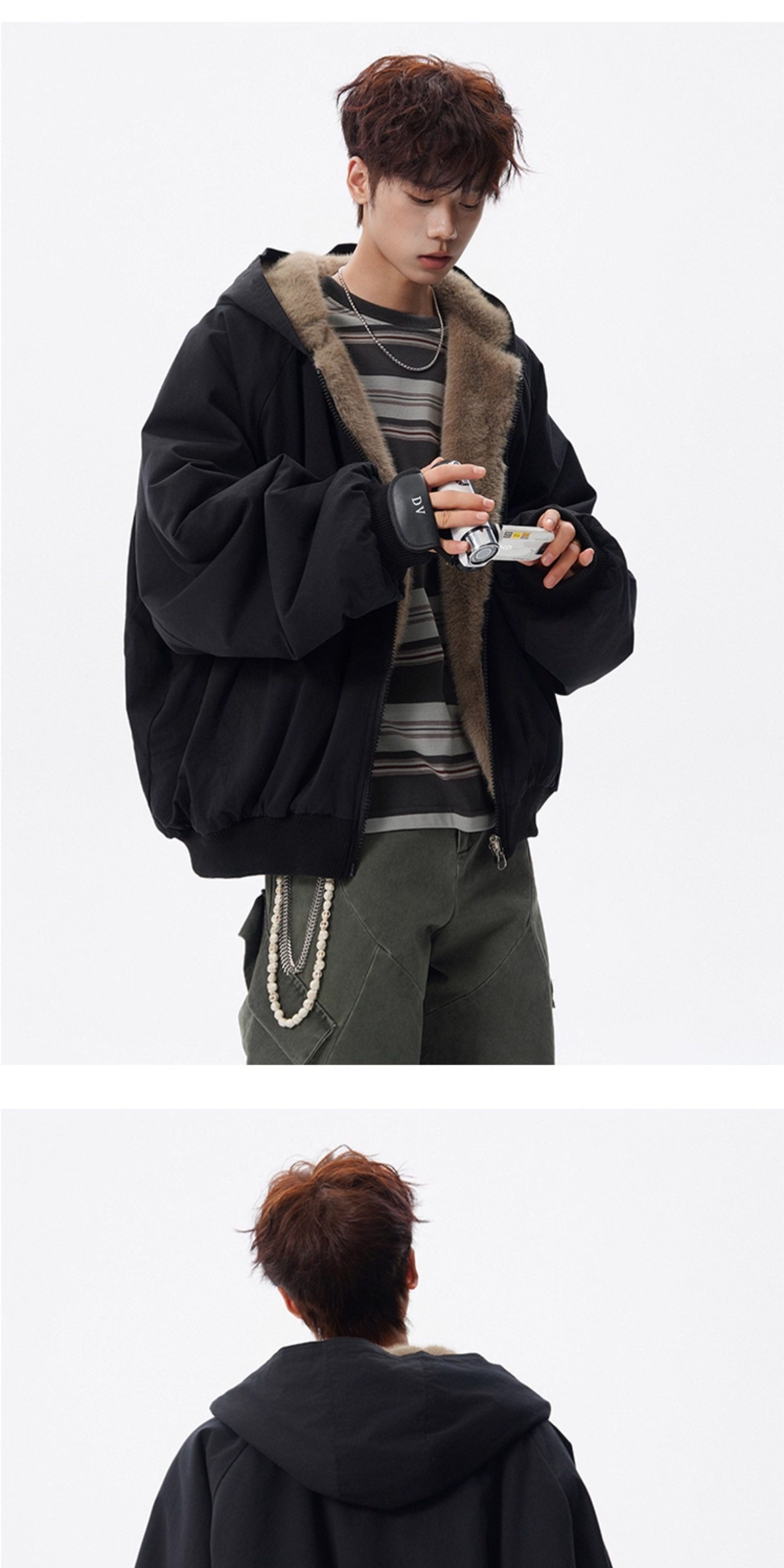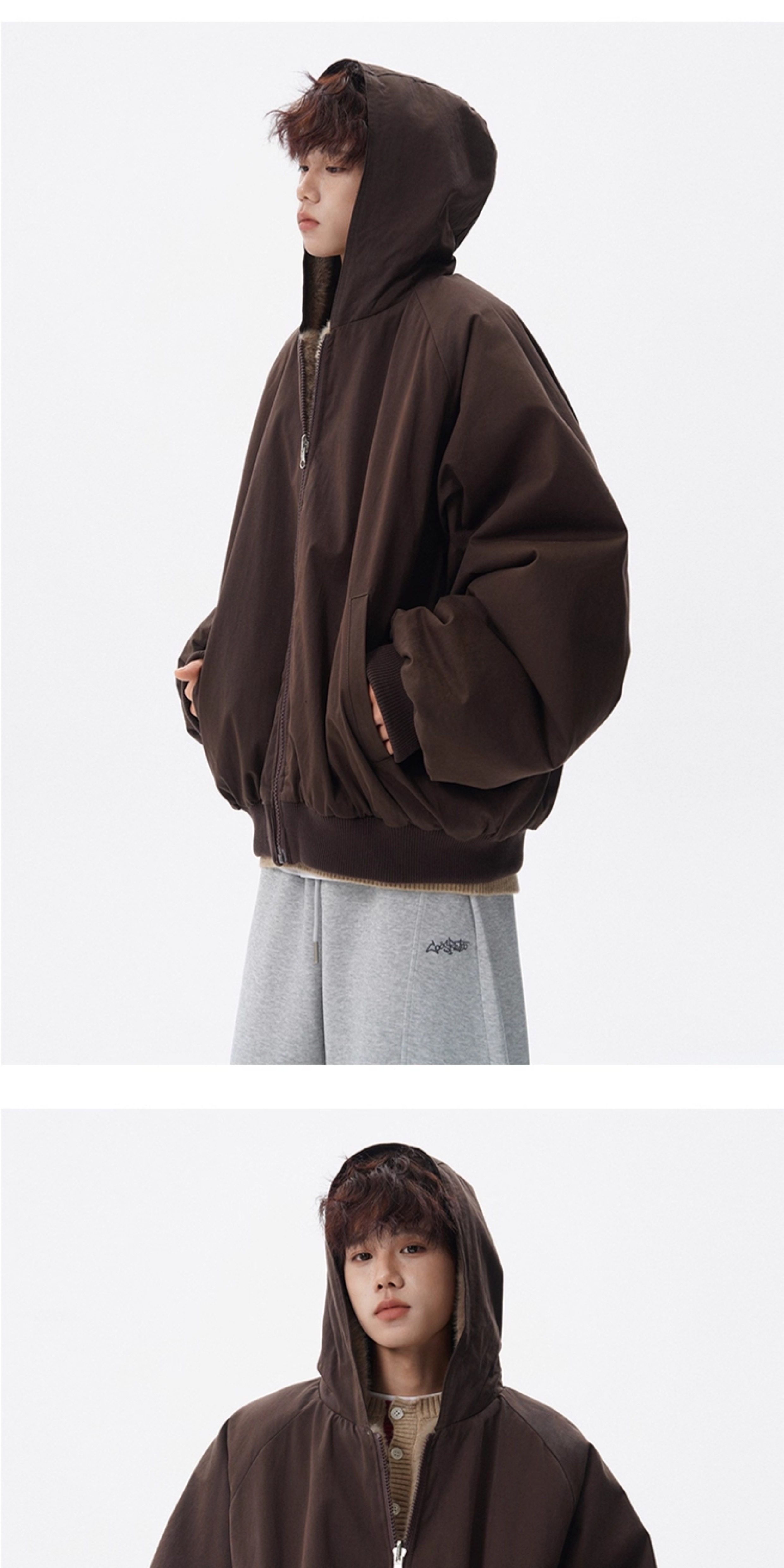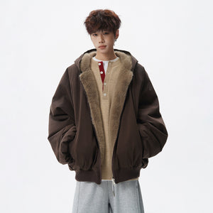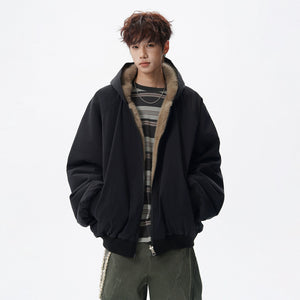 American mountain carving fleece hooded cotton-padded jacket men's winter new trendy brand loose retro thickened warm cotton clothes