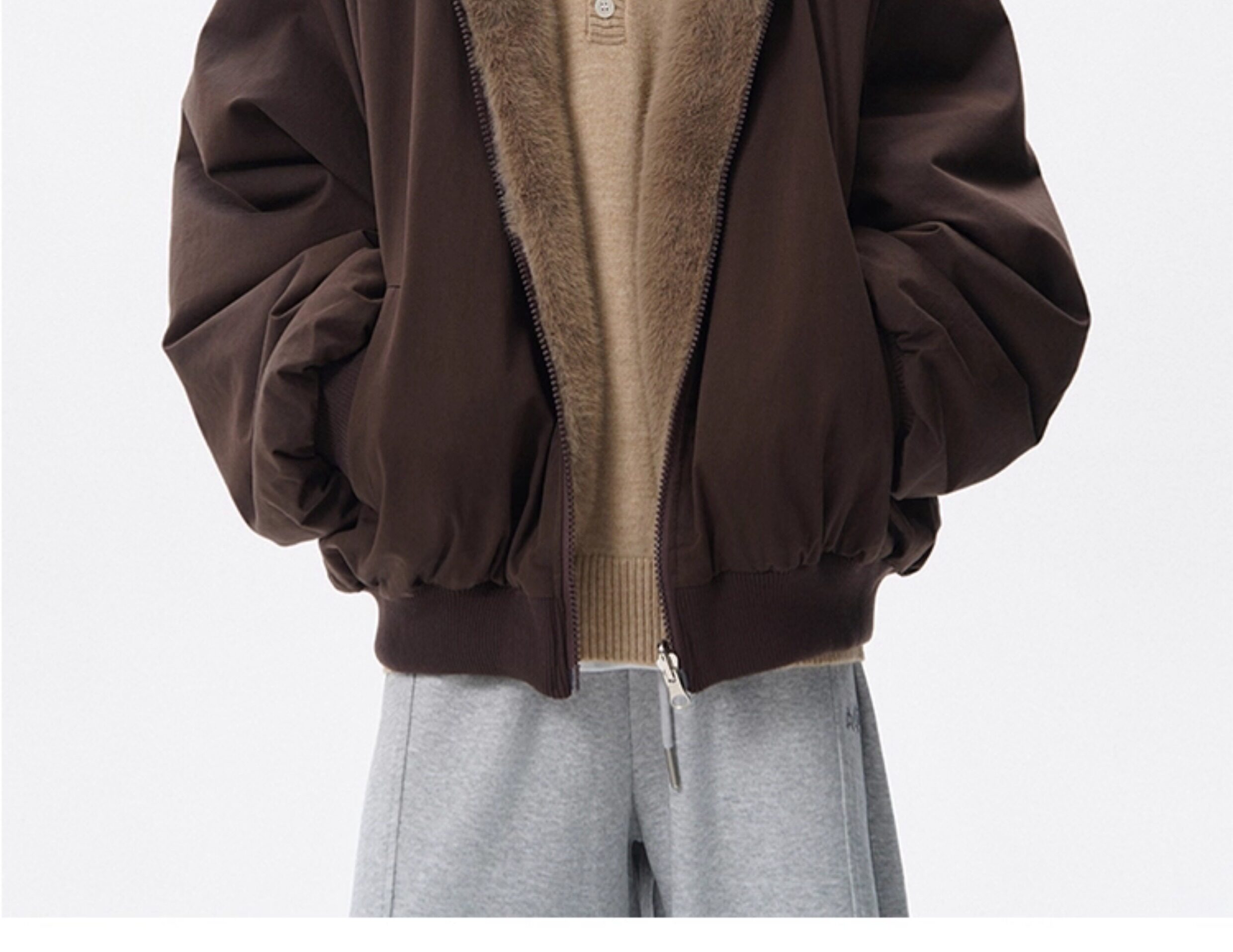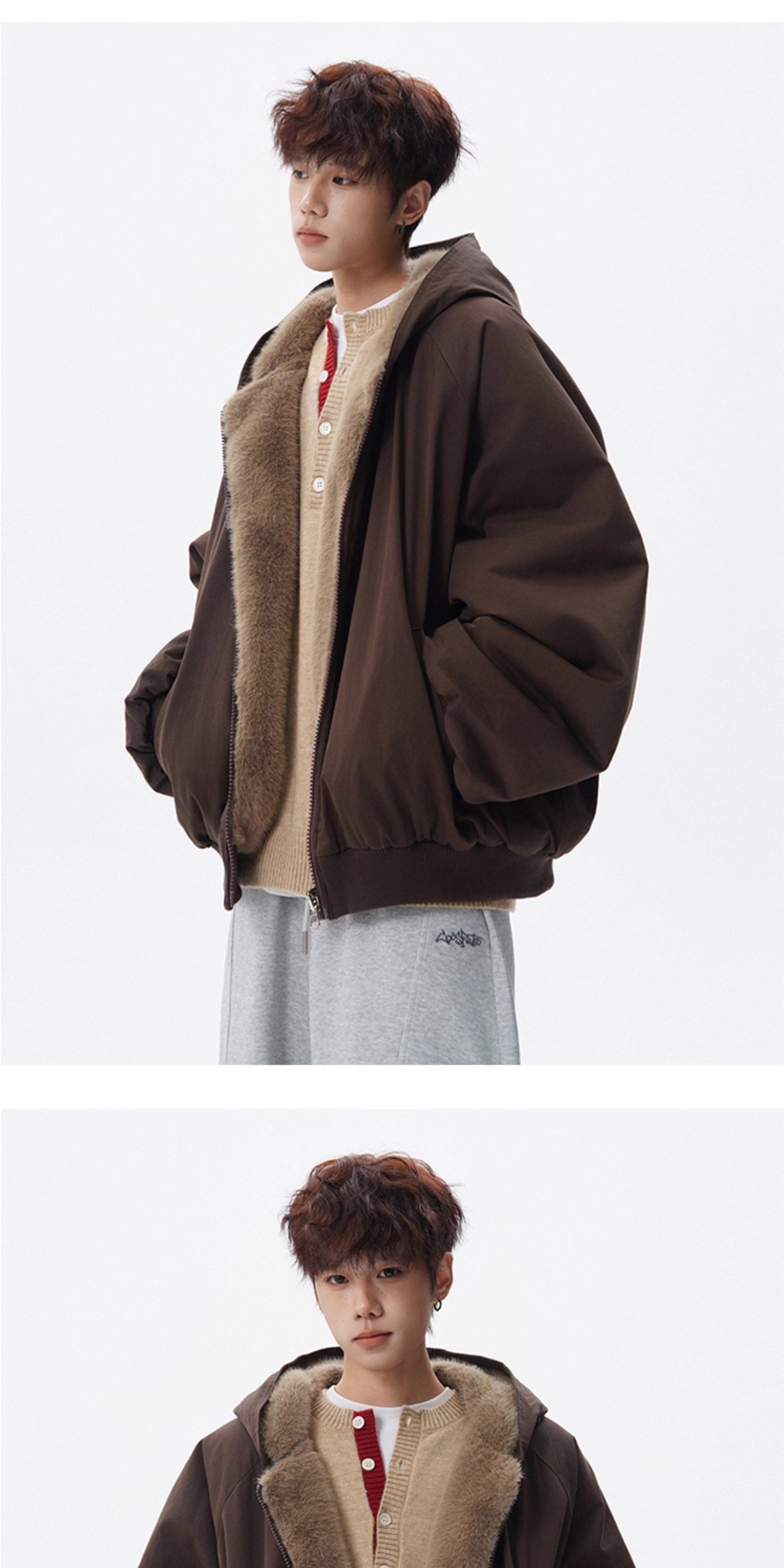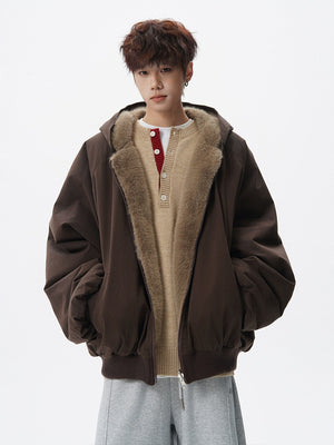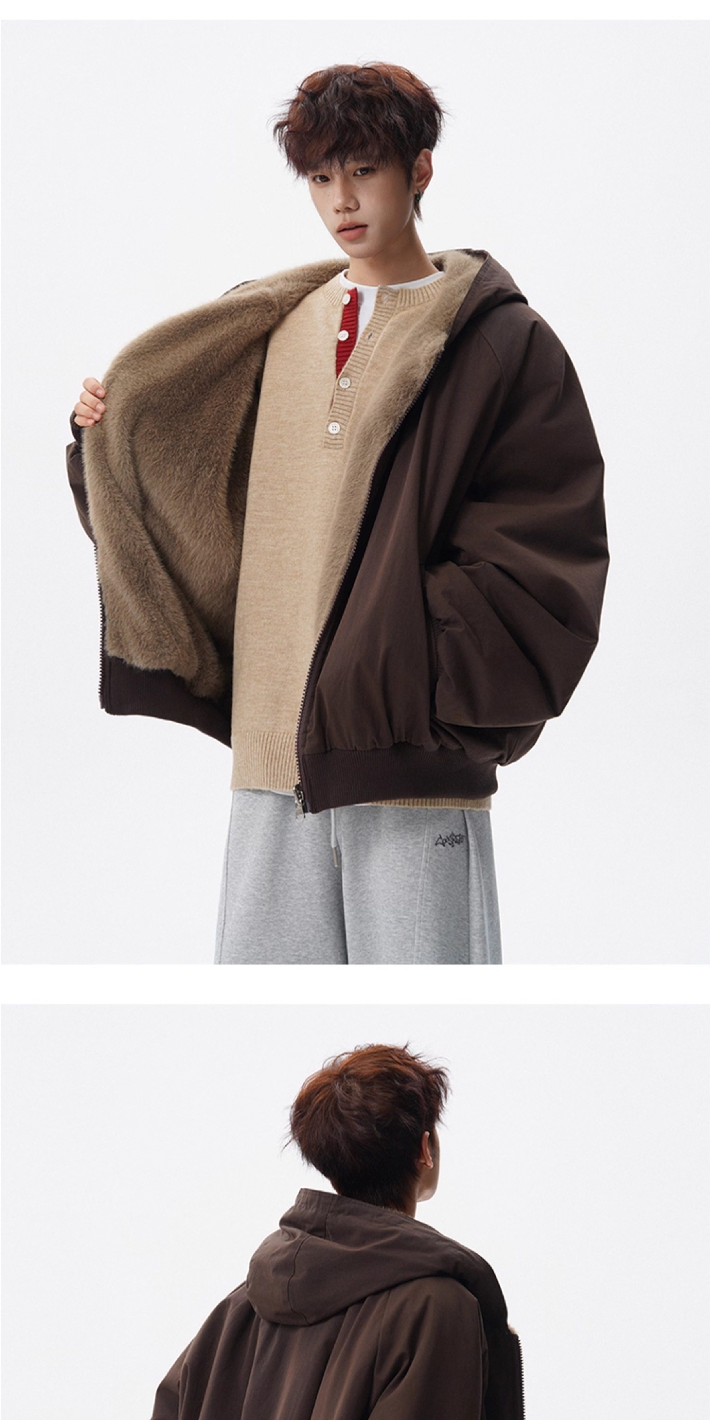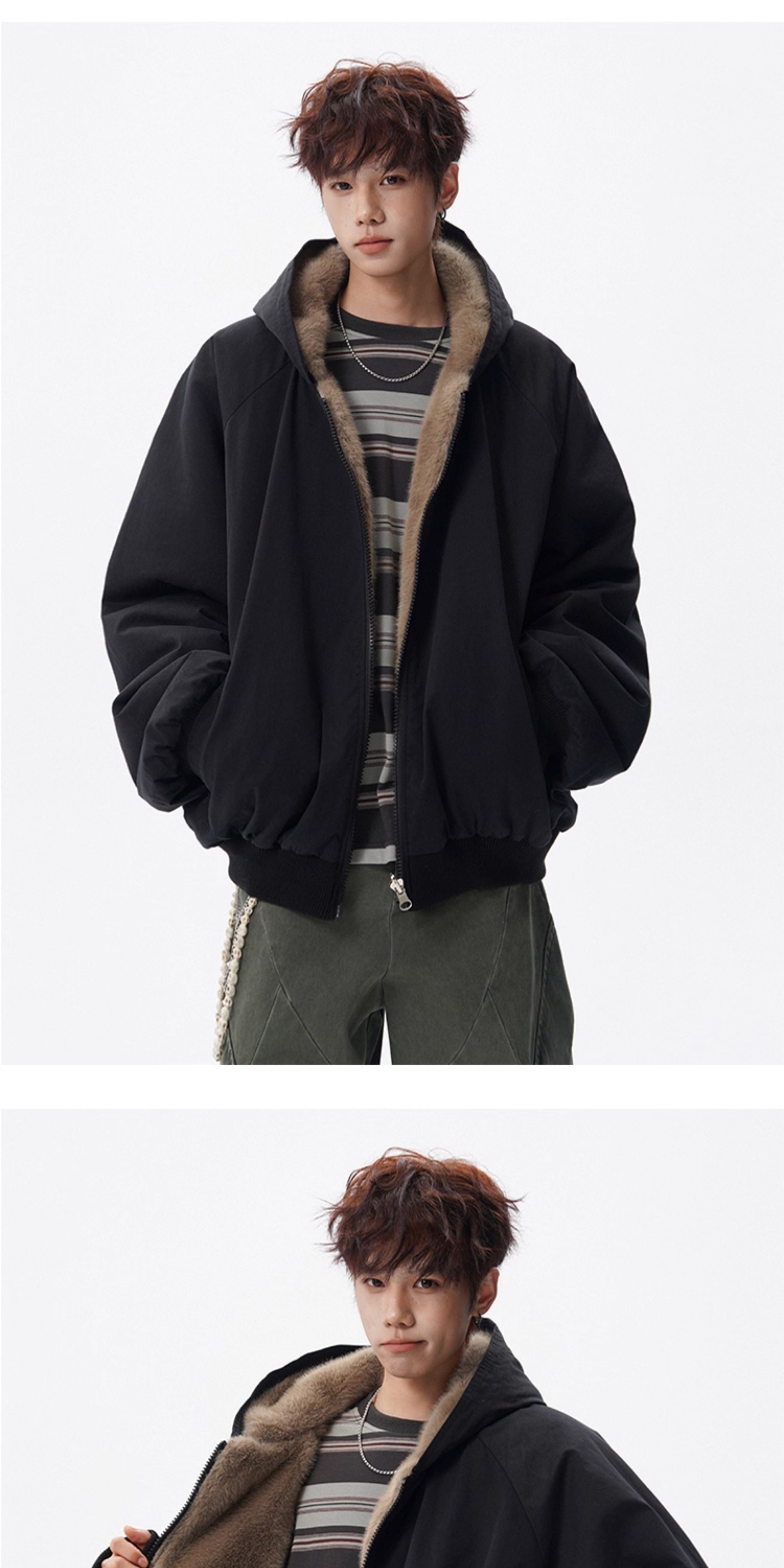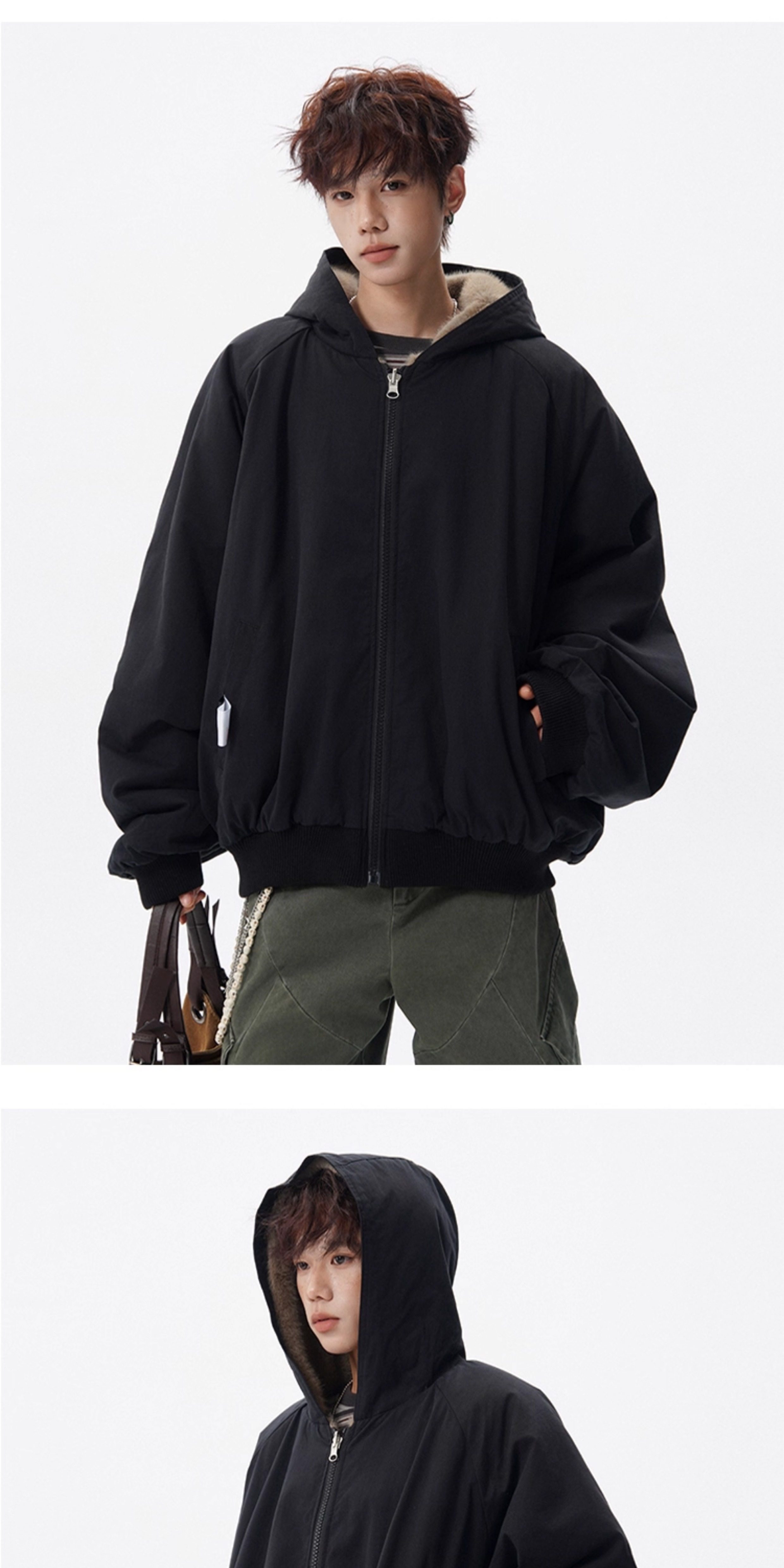 American mountain carving fleece hooded cotton-padded jacket men's winter new trendy brand loose retro thickened warm cotton clothes
