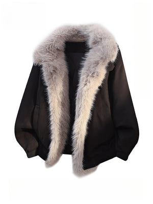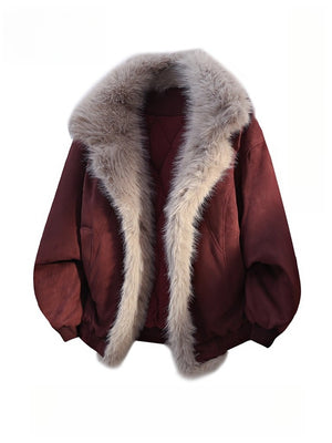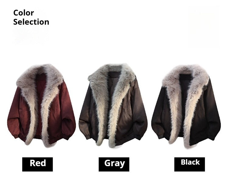 American retro seat mountain carving down cotton-padded jacket men's winter loose fur collar cotton-padded jacket men's