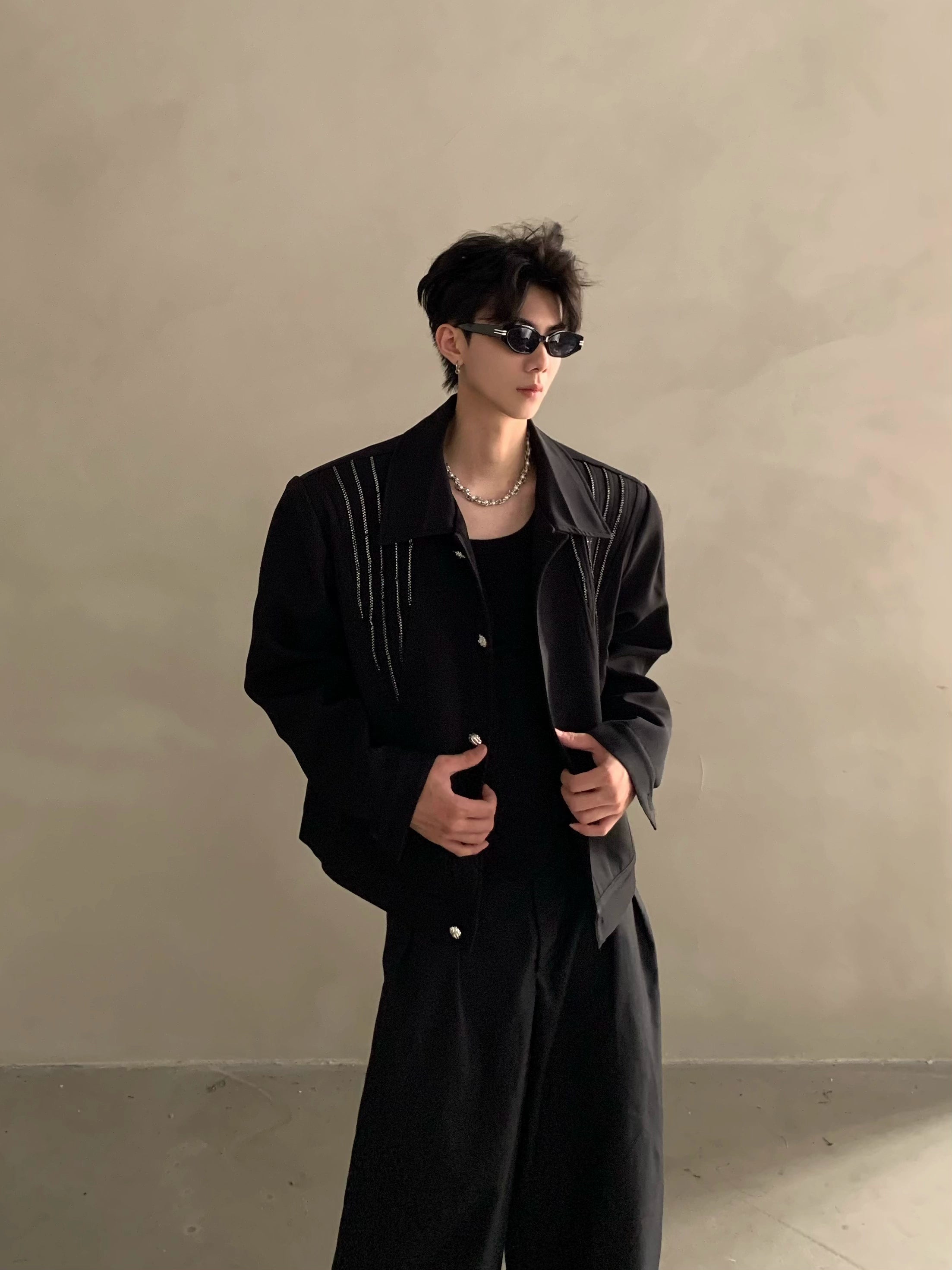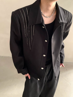 Autumn and winter niche high-end light luxury hot diamond design shoulder padded jacket jacket men's ruffian handsome top tide