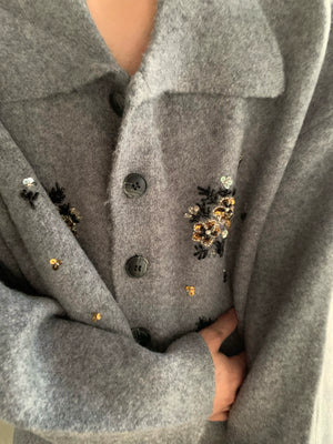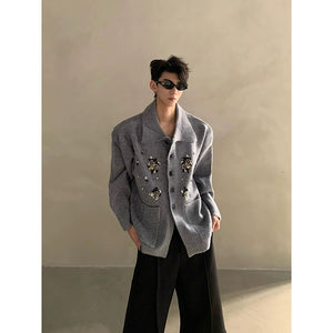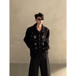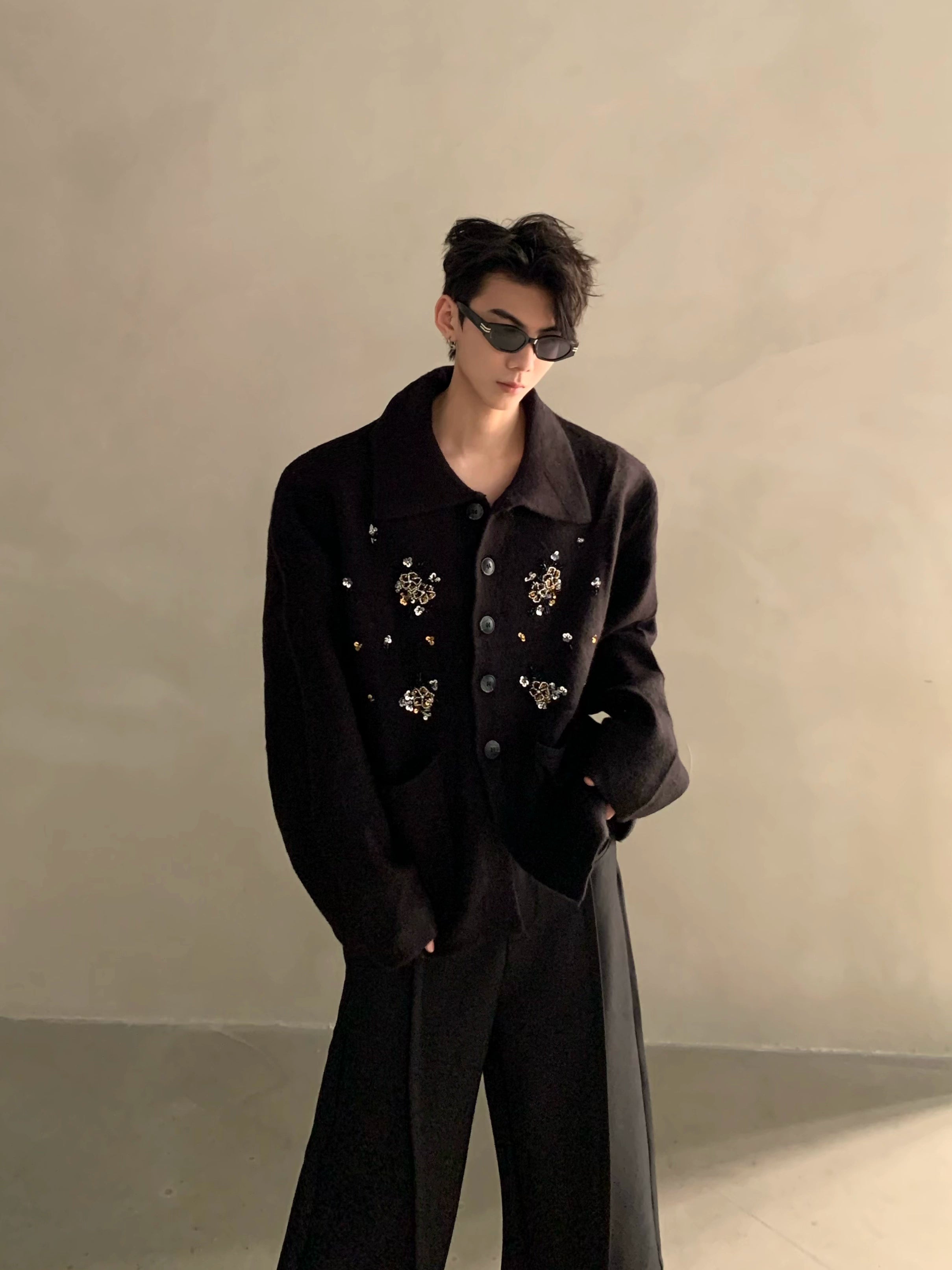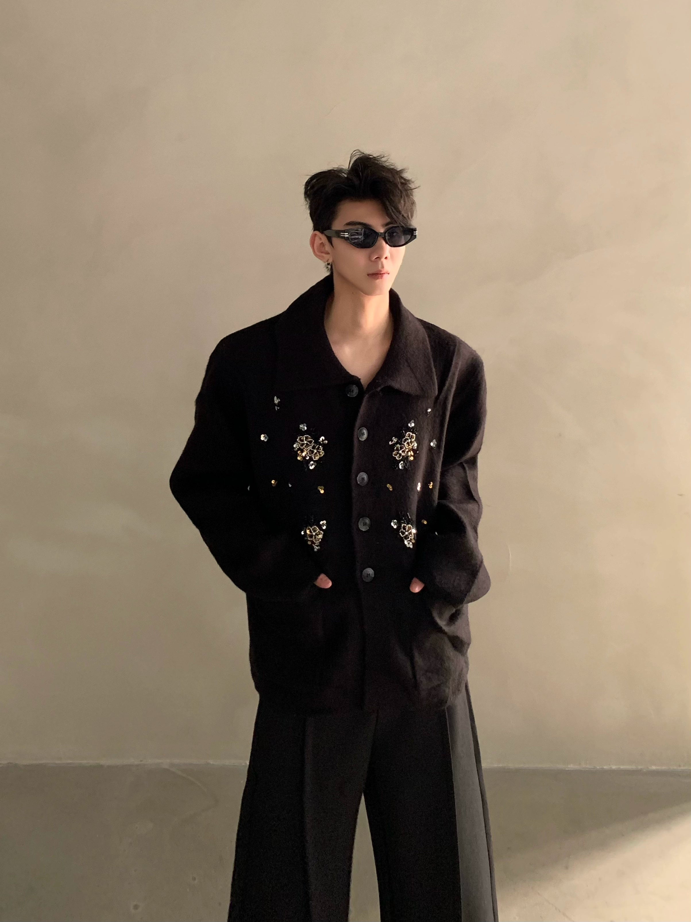 Autumn and winter niche high-end sense of extravagance heavy industry nail flower design knitted sweater men's cardigan jacket tide