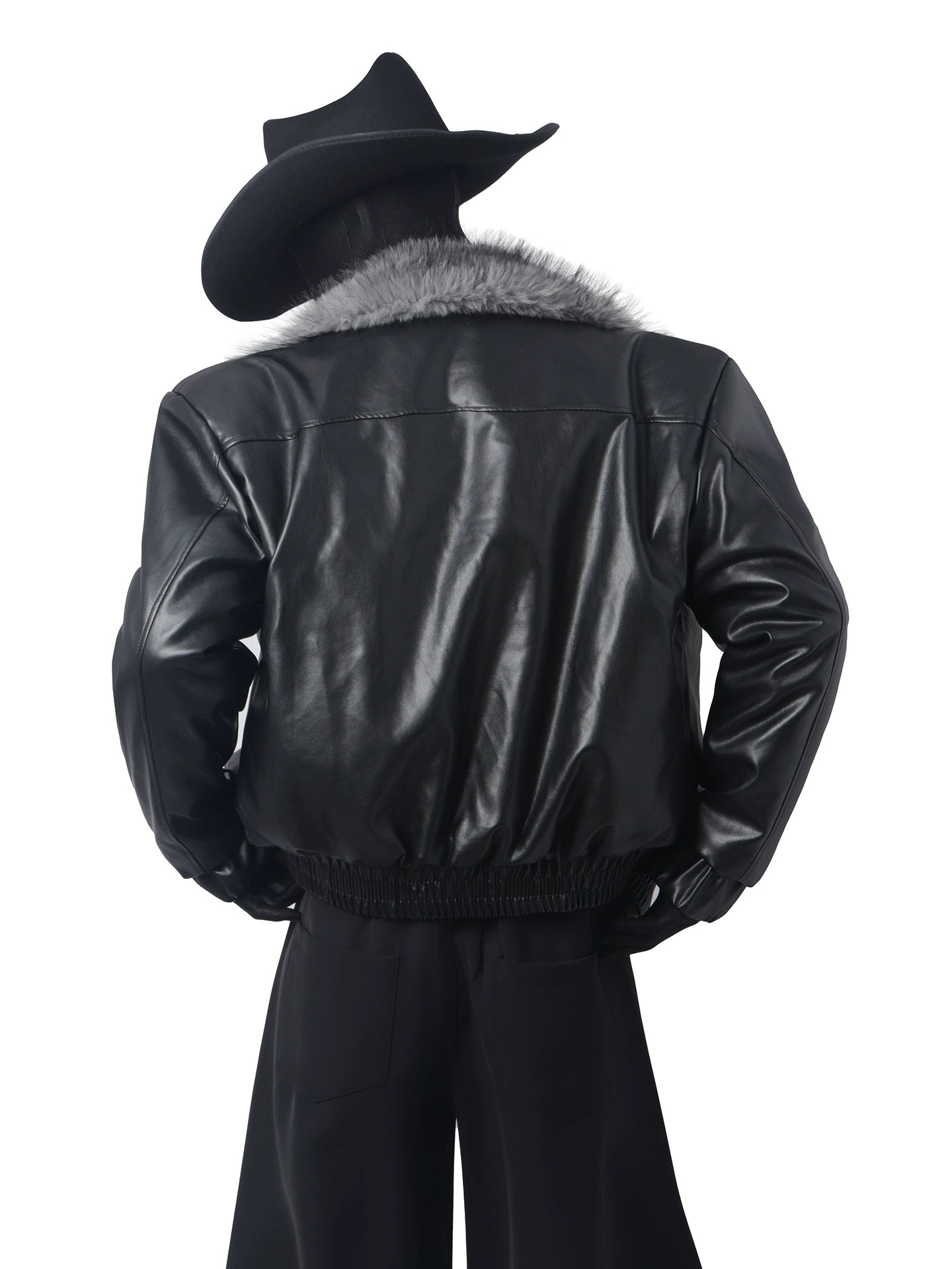 Black Clothes Premium Sense Large Fur Collar Seat Mountain Carving Jacket Men's Winter Fleece Short Jacket Cotton Clothing Tide