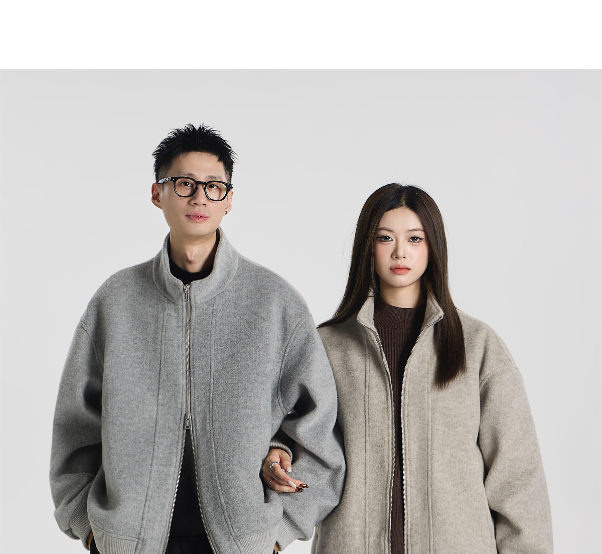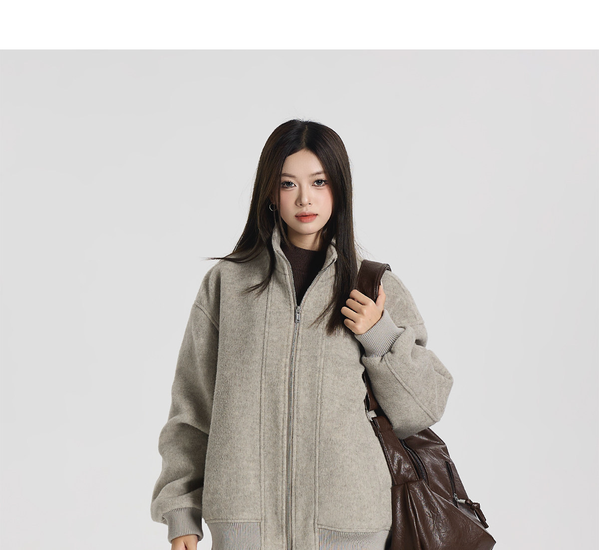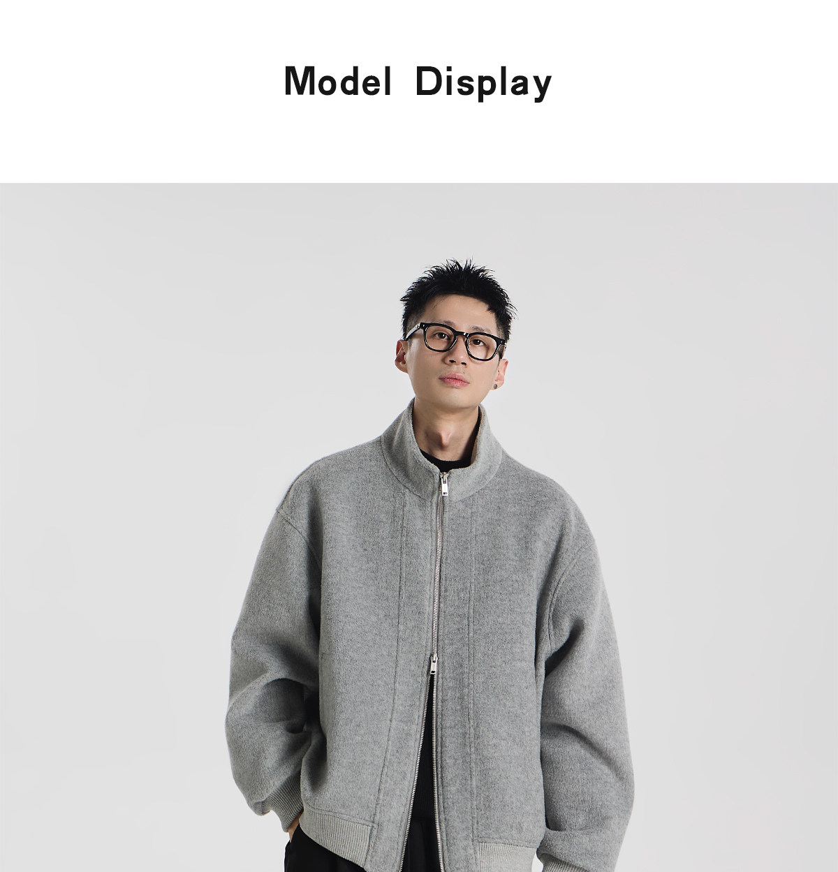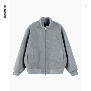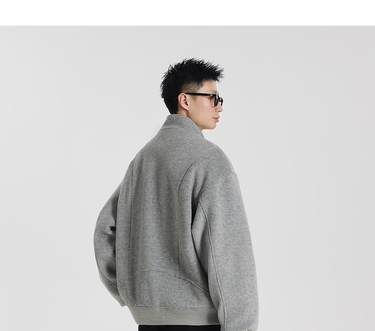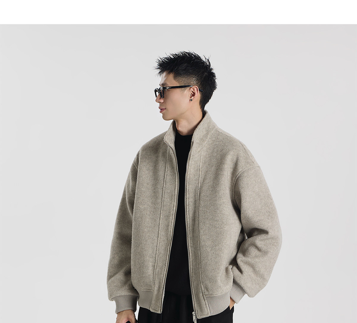 Custom-woven wool-blend woolen short silhouette loose stand-up collar fashion jacket