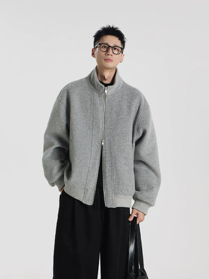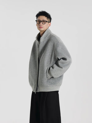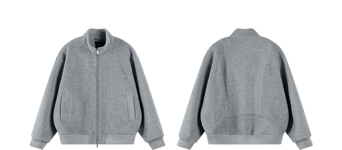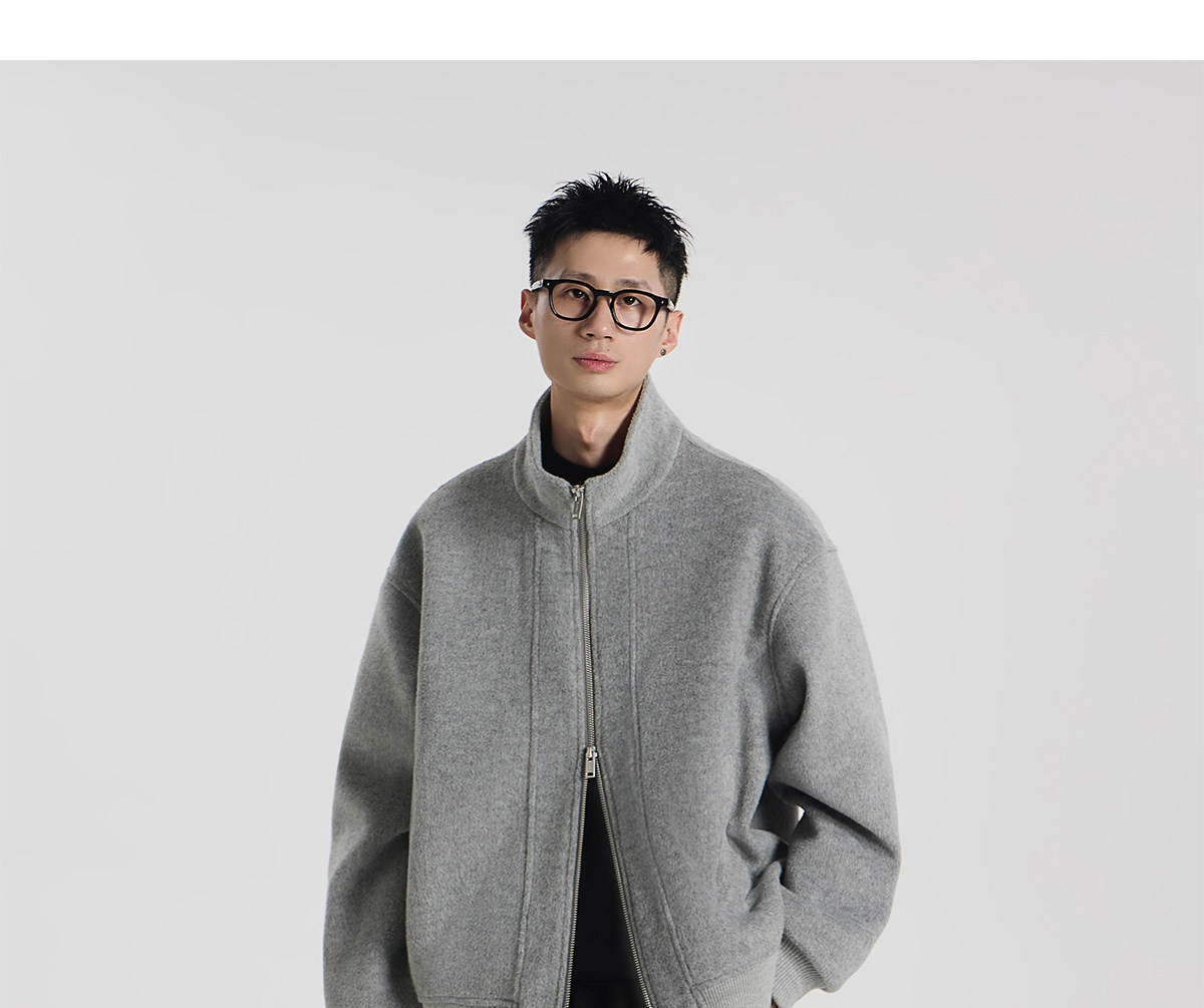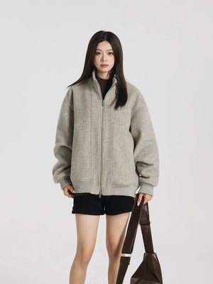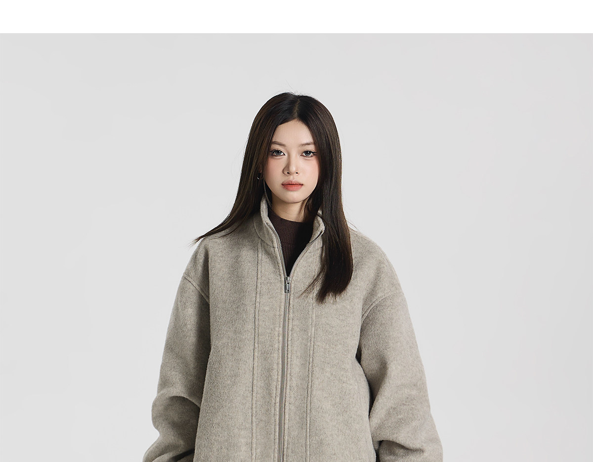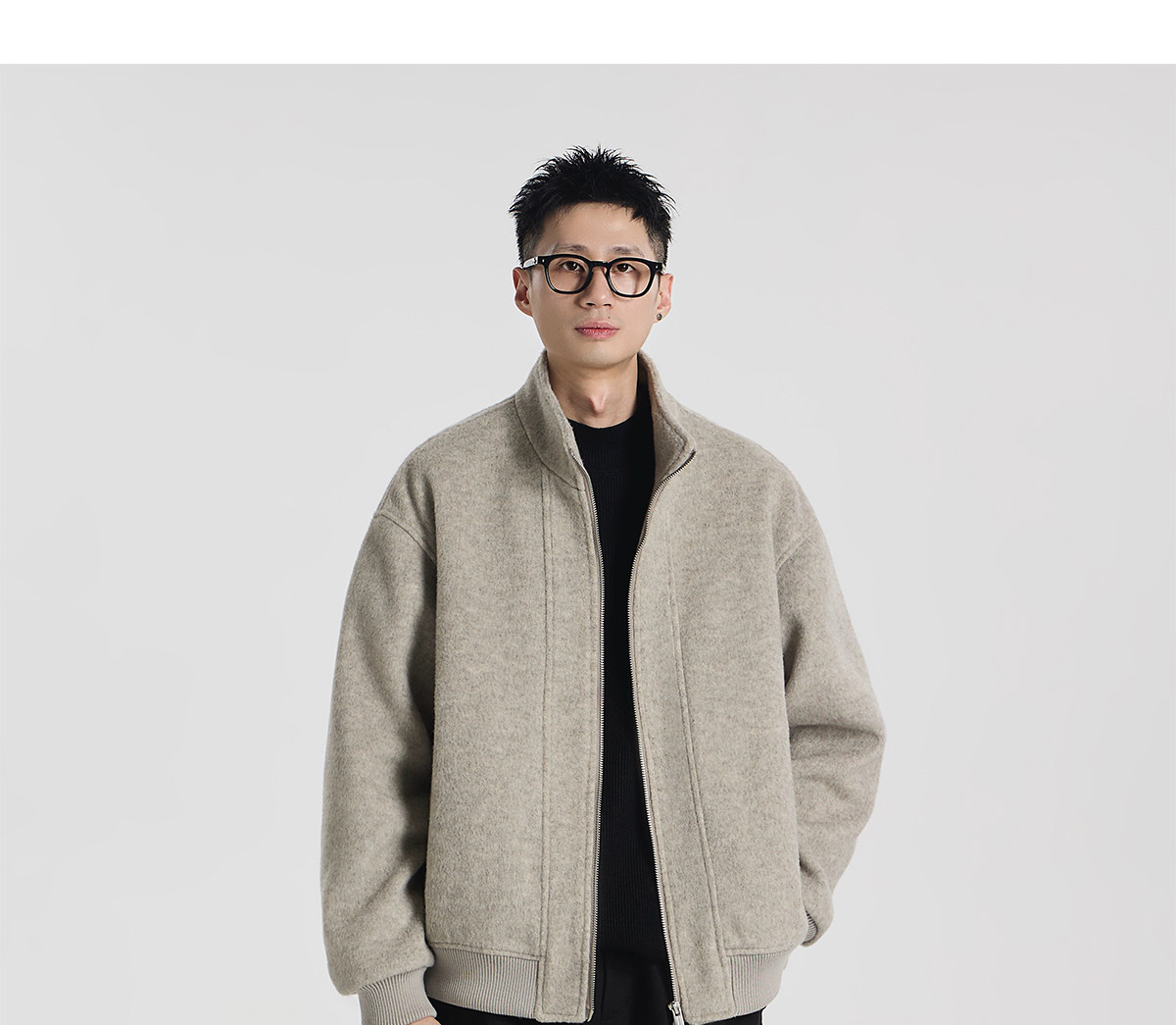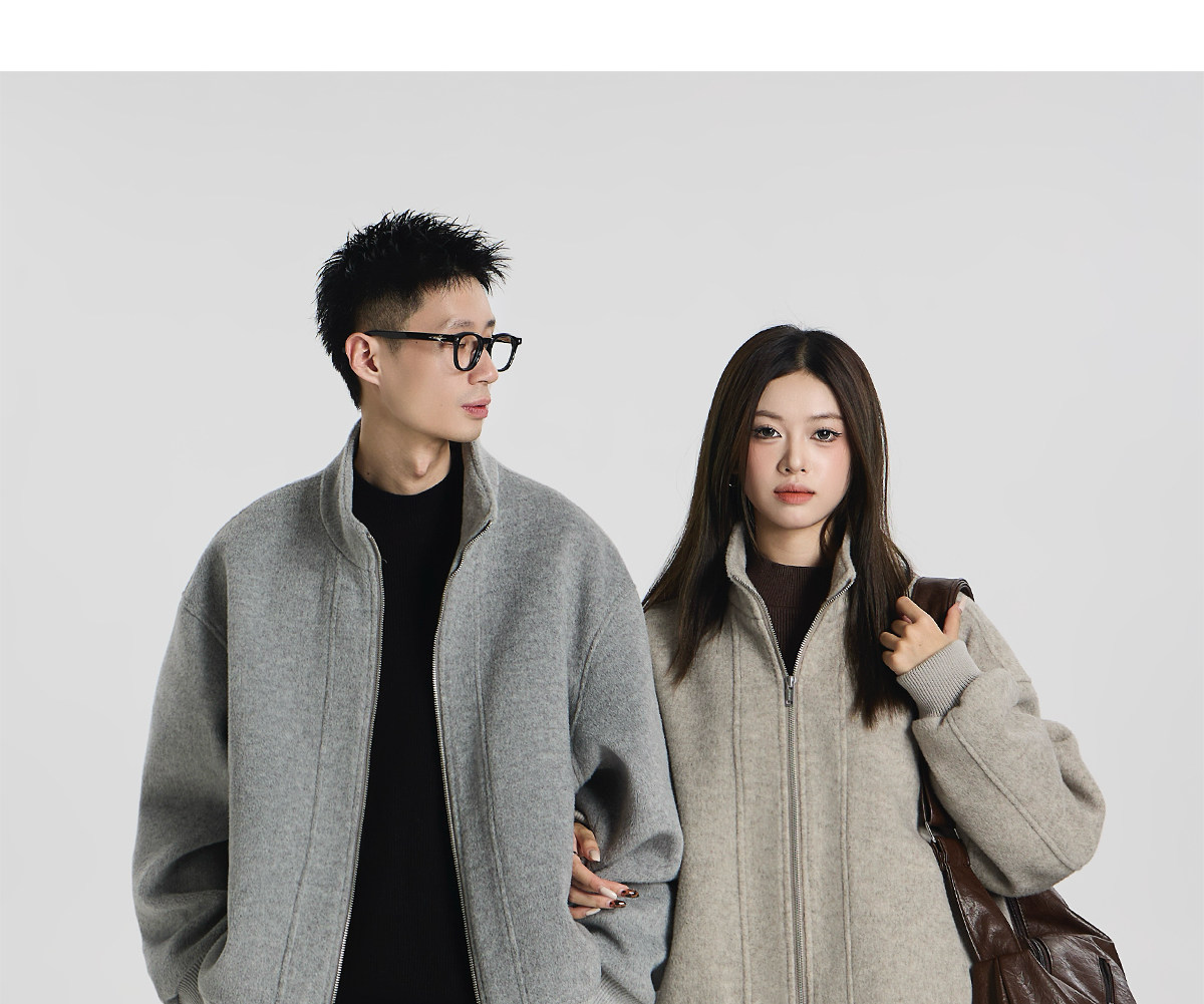 Custom-woven wool-blend woolen short silhouette loose stand-up collar fashion jacket