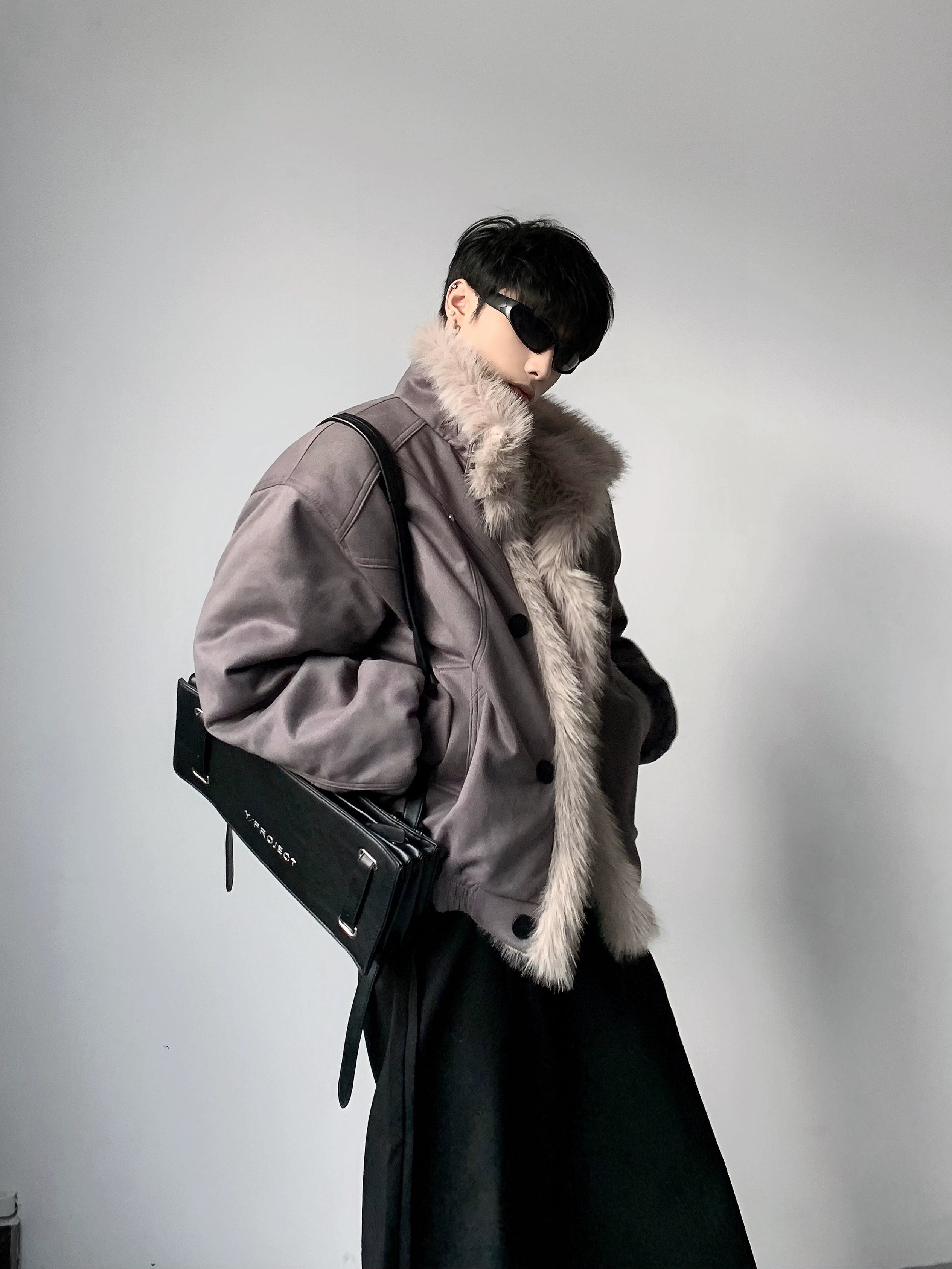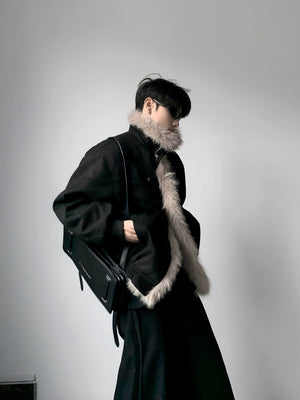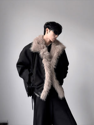 High-end big fur collar cleanfit seat mountain carving jacket men's winter velvet short jacket cotton clothes