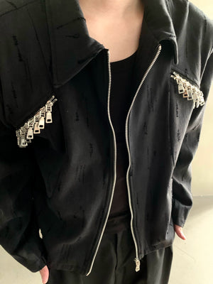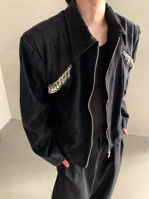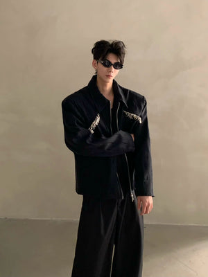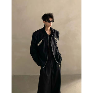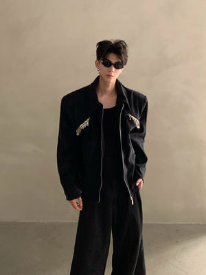 High sense niche metal deconstruction design shoulder padded jacket jacket men's ruffian handsome loose top trendy