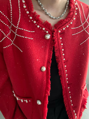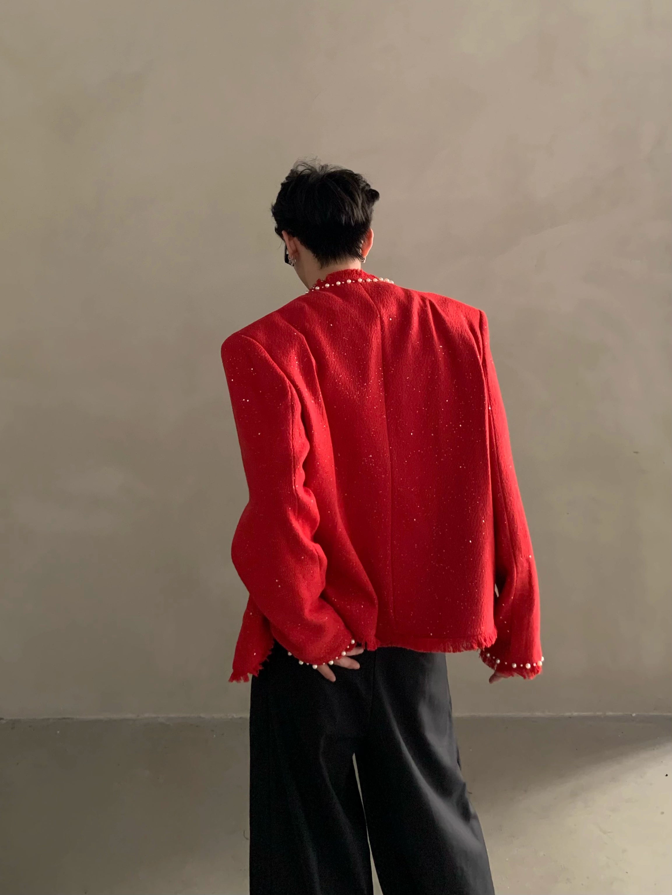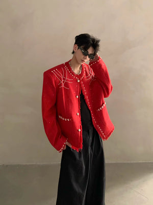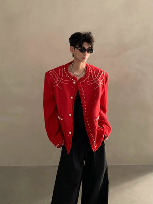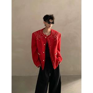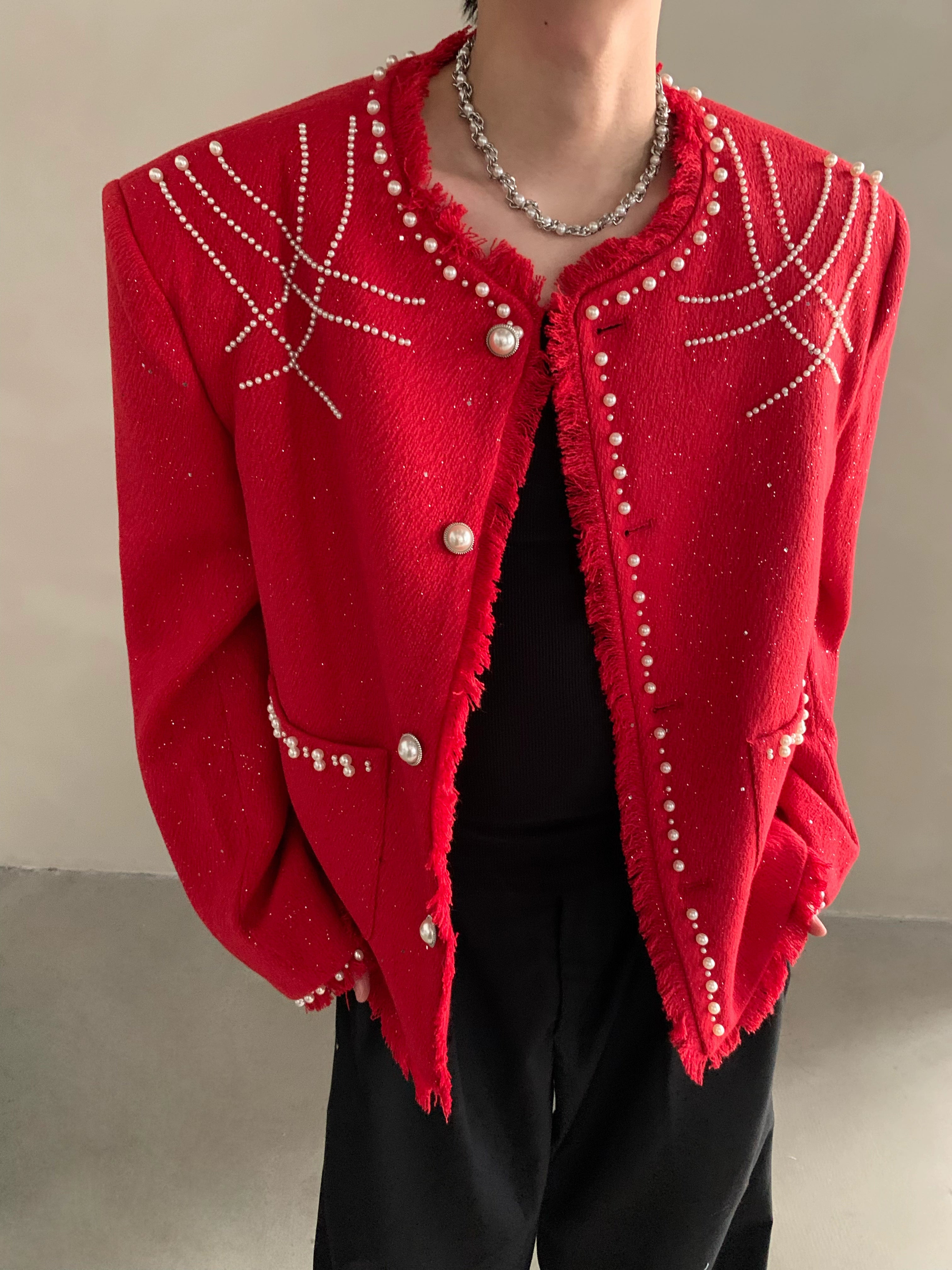 Niche high-end bead pattern design shoulder pads red small fragrant jacket jacket men's top