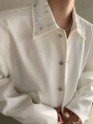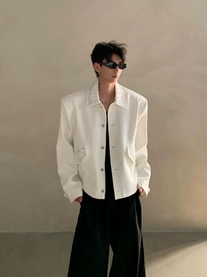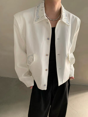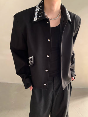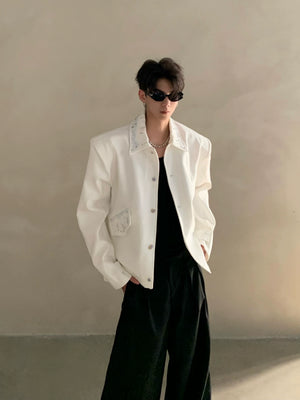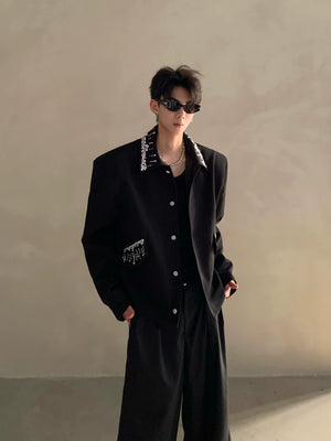Niche high-end light luxury yuppie hand-sewn sequins shoulder pads short jacket men's ruffian handsome coat tide