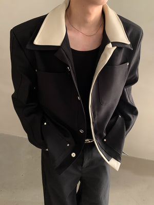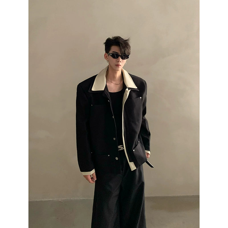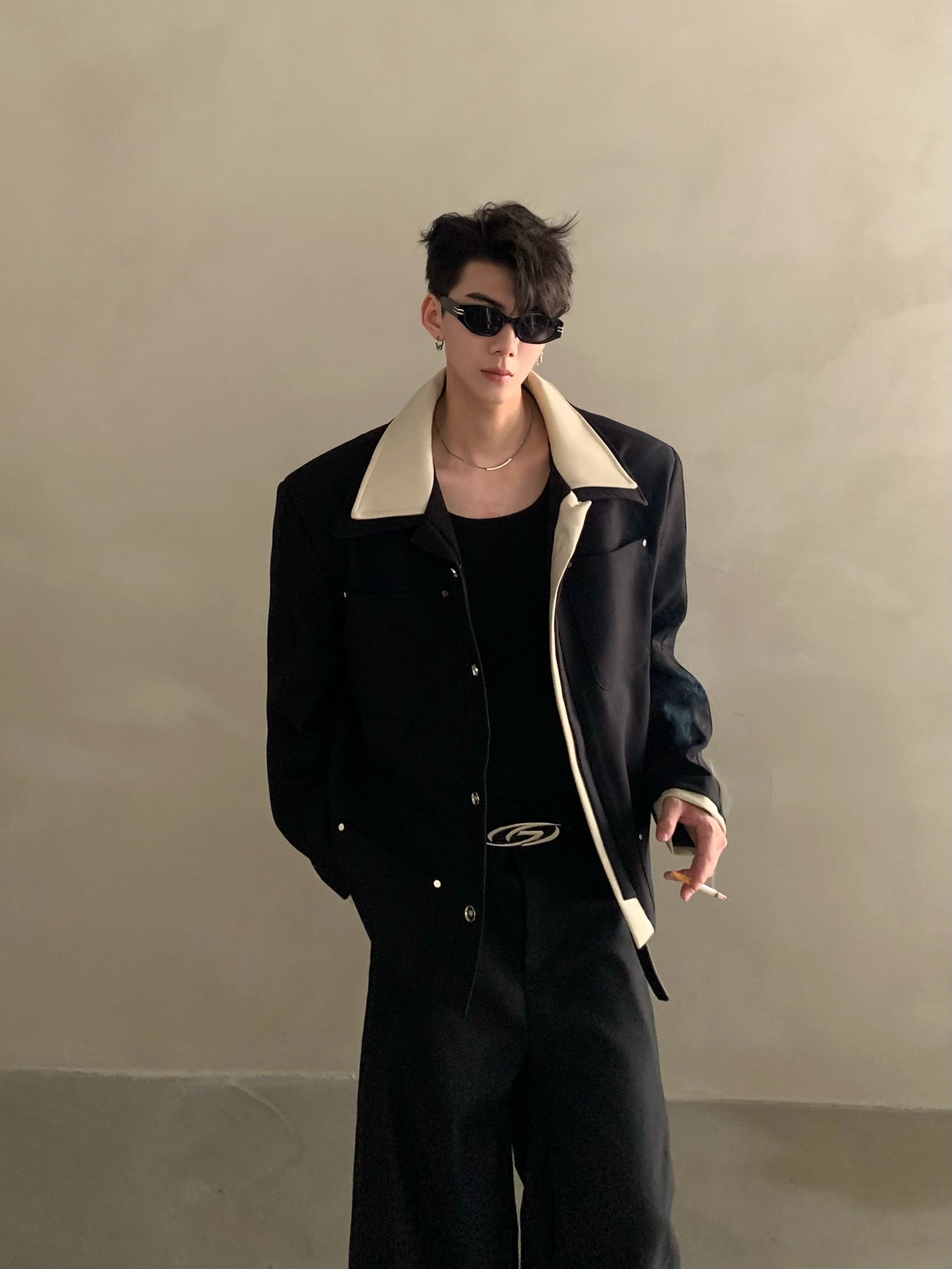 Niche light luxury high-end splicing lapel design casual jacket jacket men's ruffian handsome top tide