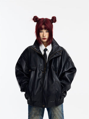 Home Jacket [PeopleStyle] Genderless wear silhouette fashionable leather jacket st1789