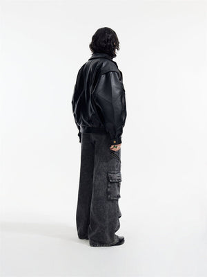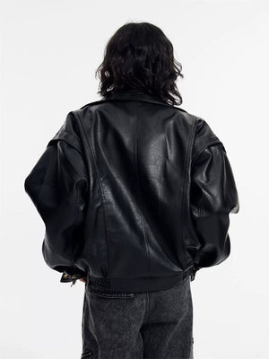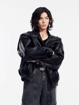 [PeopleStyle] Genderless wear silhouette fashionable leather jacket st1789