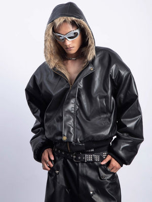 [PLAN1ONE] reversible leather cotton jacket st2672