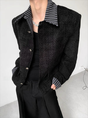 Premium fake two-piece design plaid shoulder pad cleanfit jacket men's high-end luxury jacket