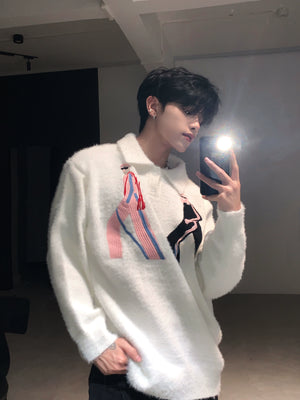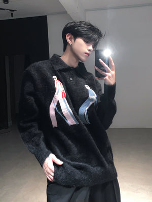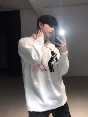 Premium mink hair sweater jacket men's winter lazy wind thickened knitted sweater tide