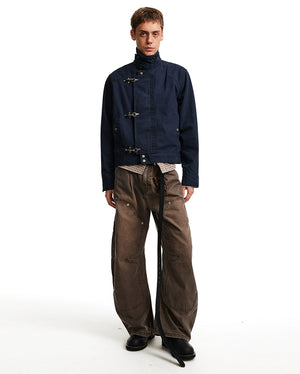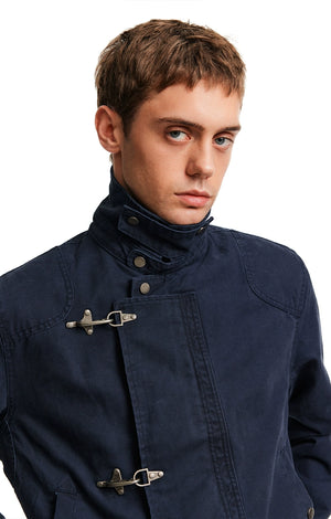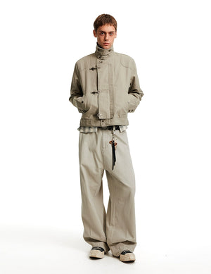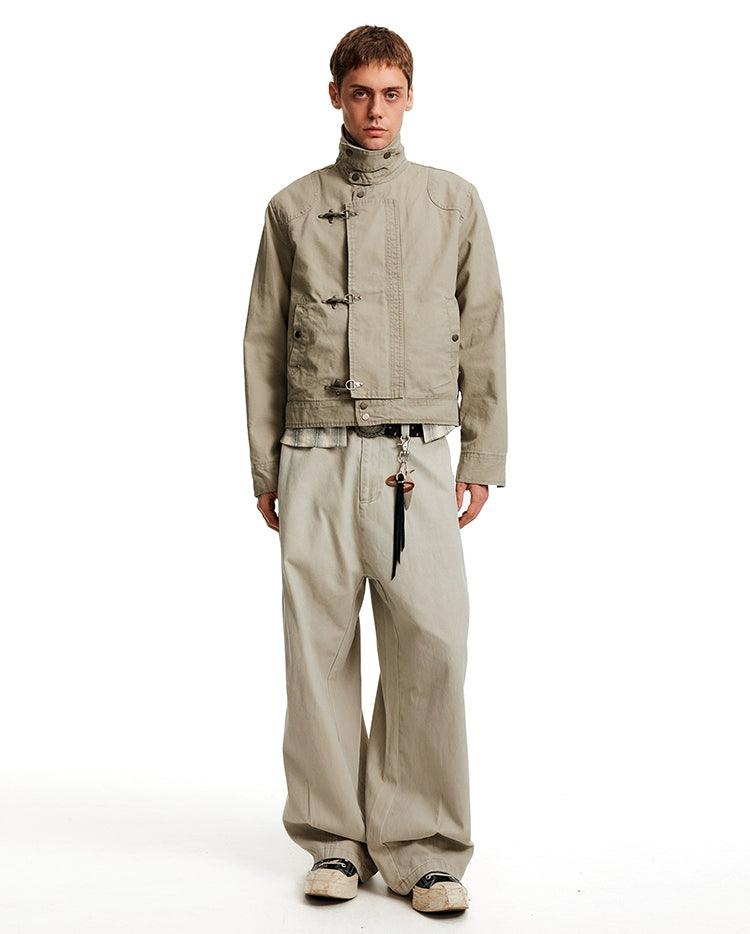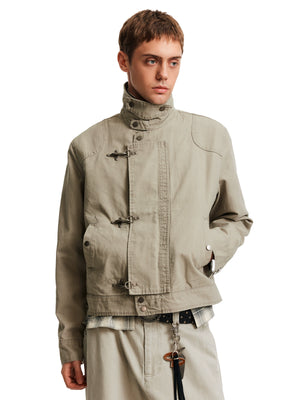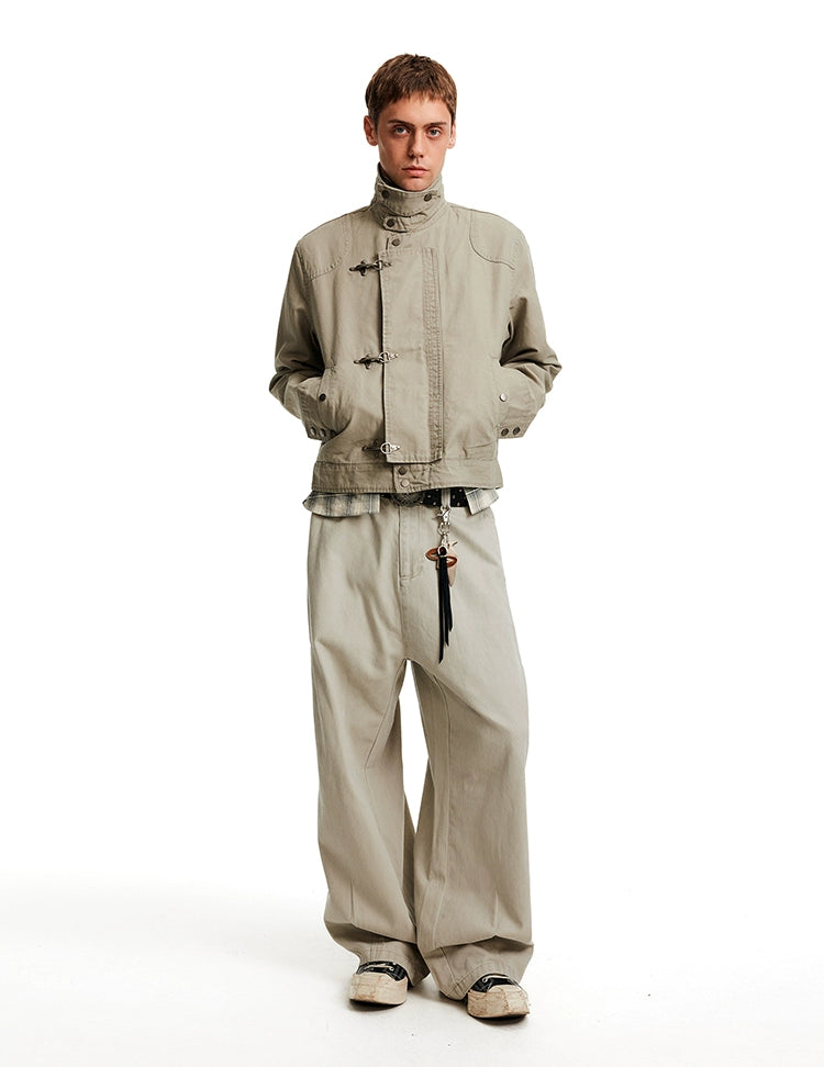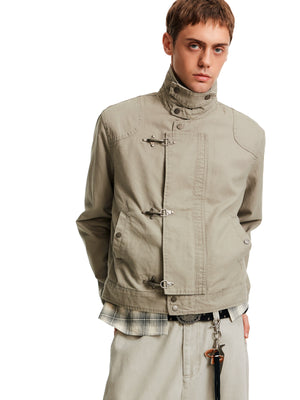 Retro high-end aircraft buckle design stand-up collar jacket for men and women, ruffian handsome high street short and wide tooling jacket