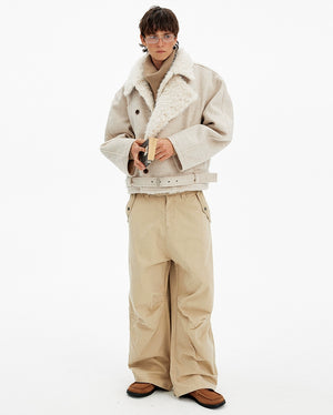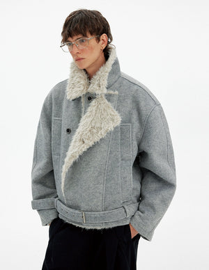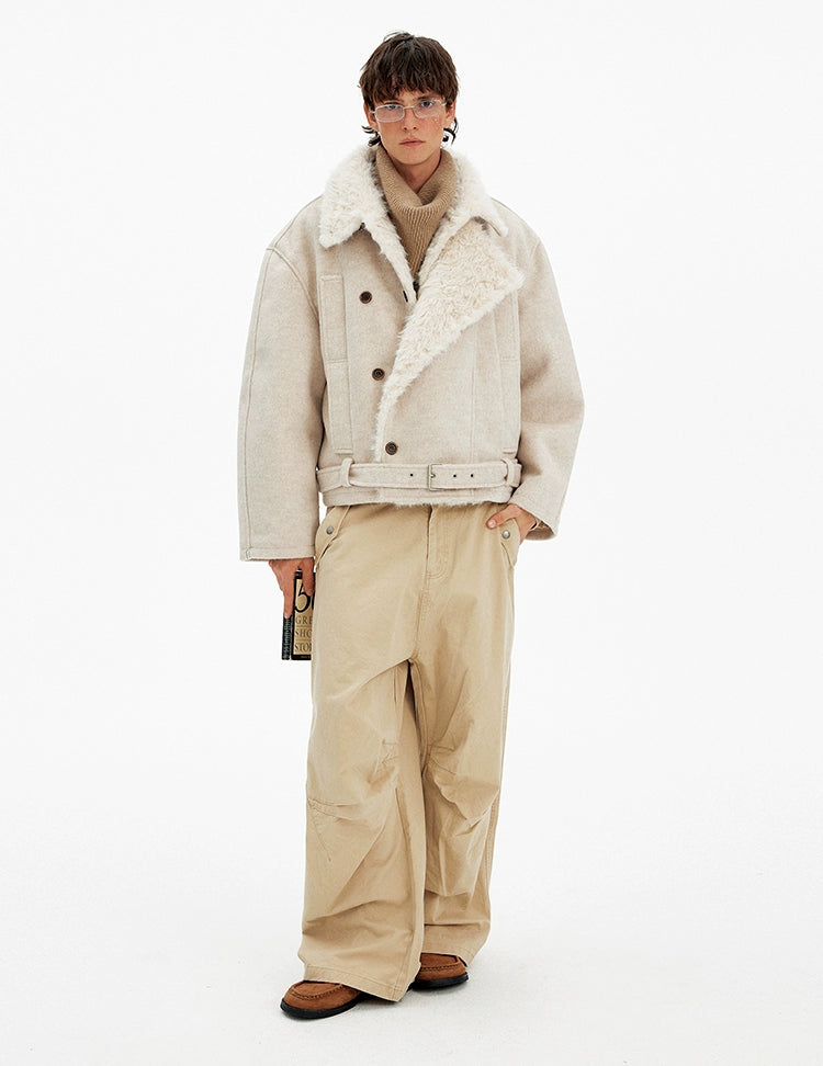 Vintage high-end double-breasted fur collar cotton clothes men's and women's winter casual wool blended warm jacket