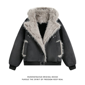 Winter American mountain carving deconstruction design warm cotton clothes men's tide brand couple thickened cotton clothes jacket