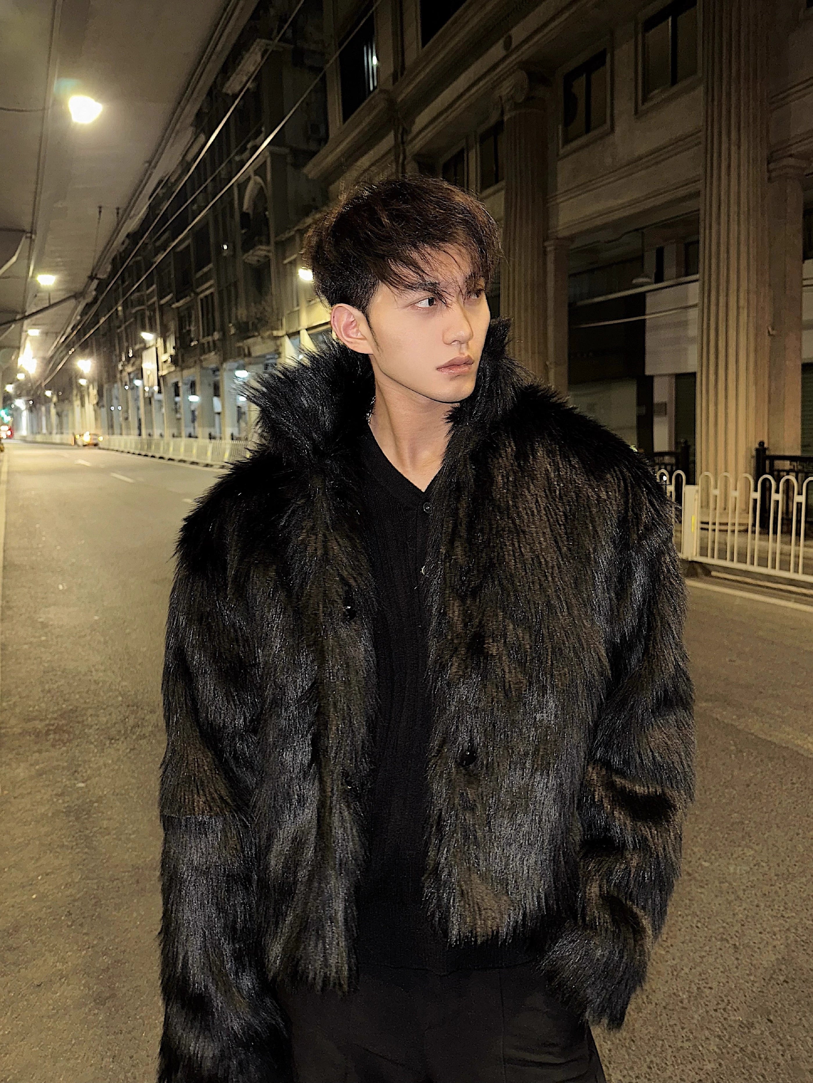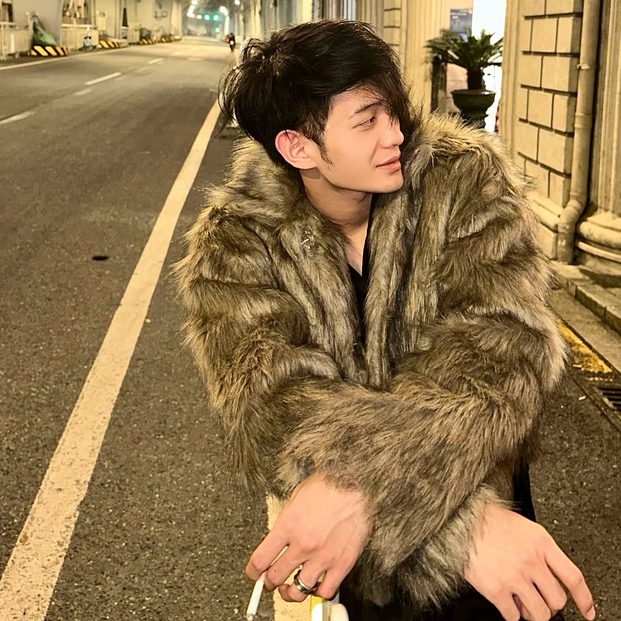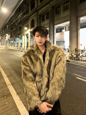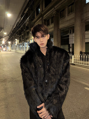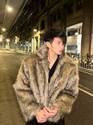 Winter high-end fashionable environmentally friendly fur short jacket male ruffian handsome lapel fur integrated jacket