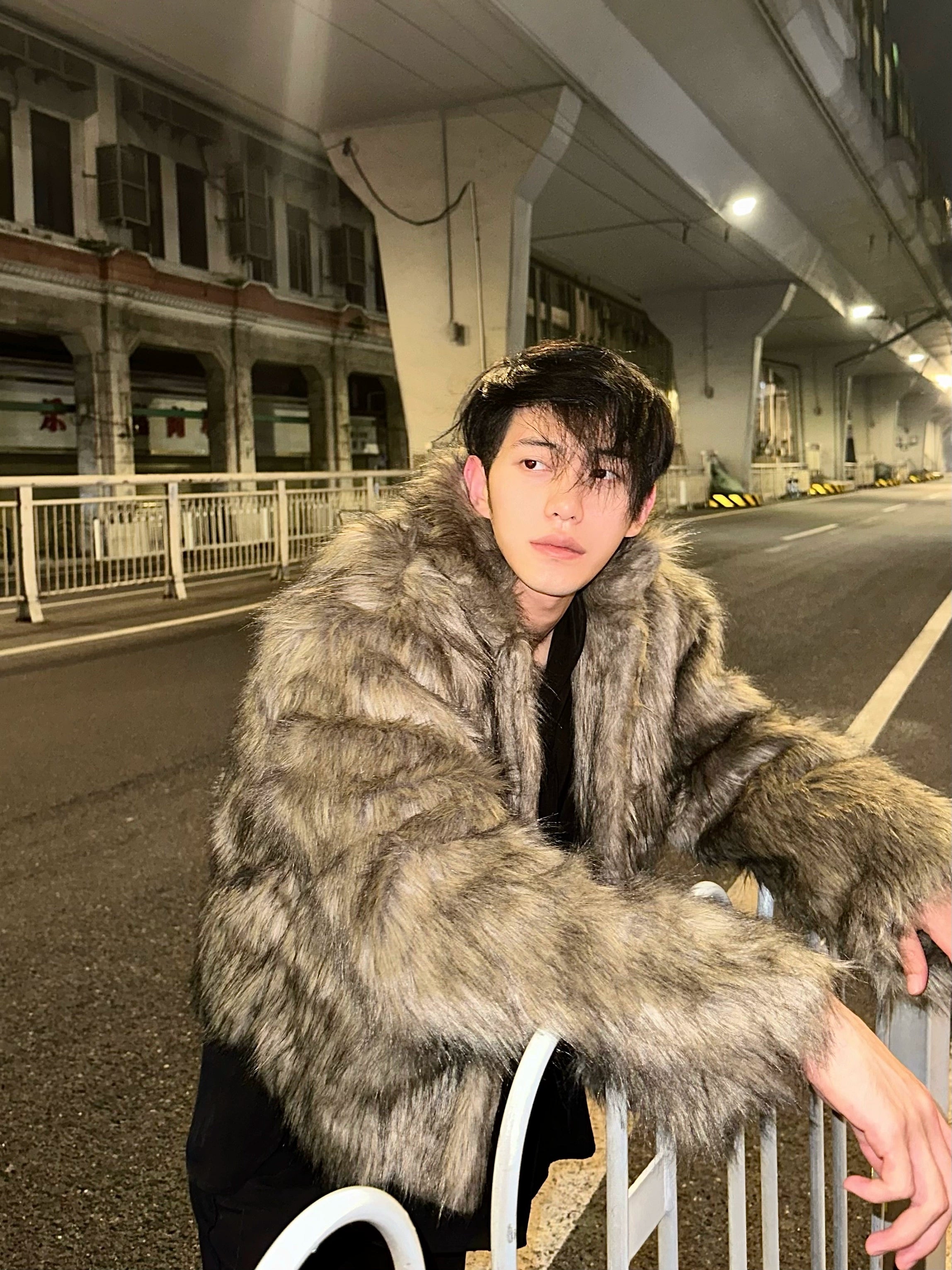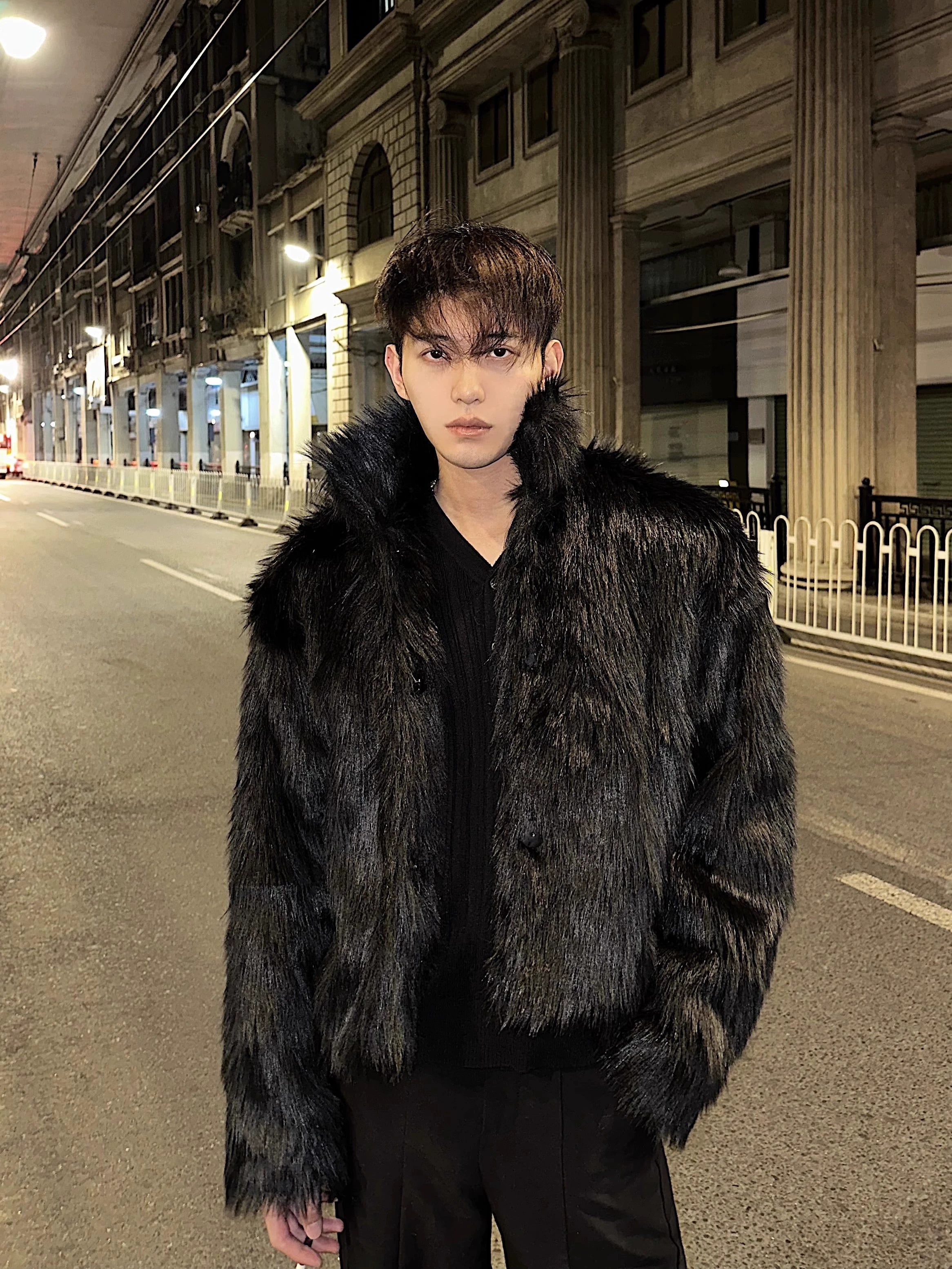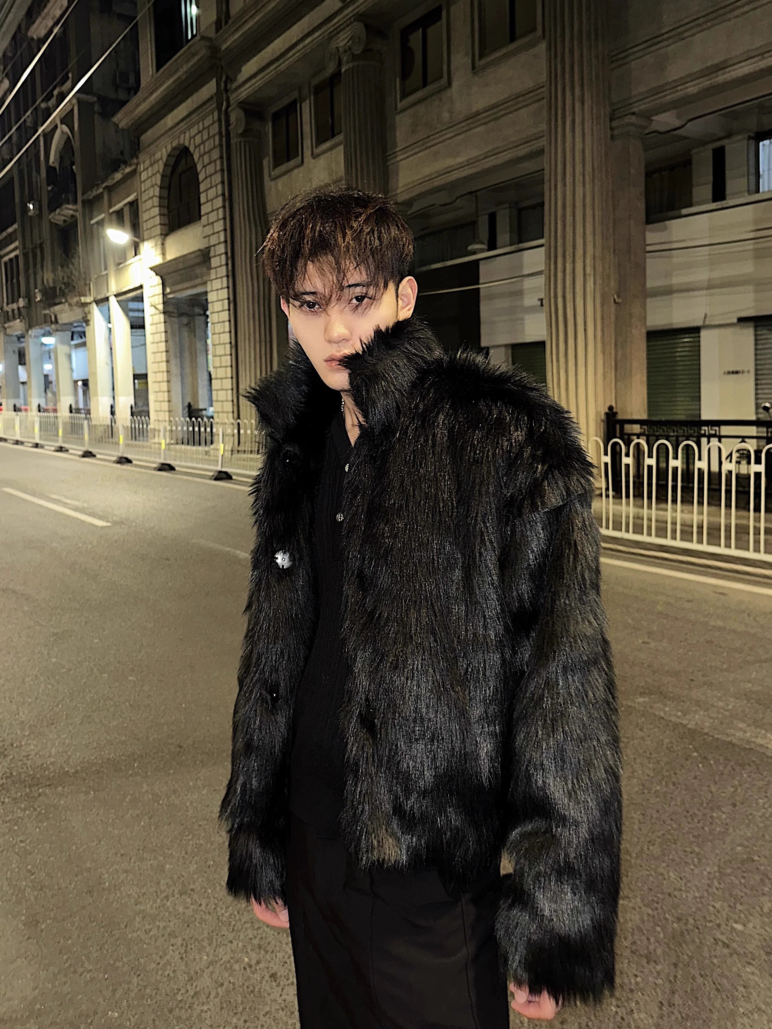 Winter high-end fashionable environmentally friendly fur short jacket male ruffian handsome lapel fur integrated jacket