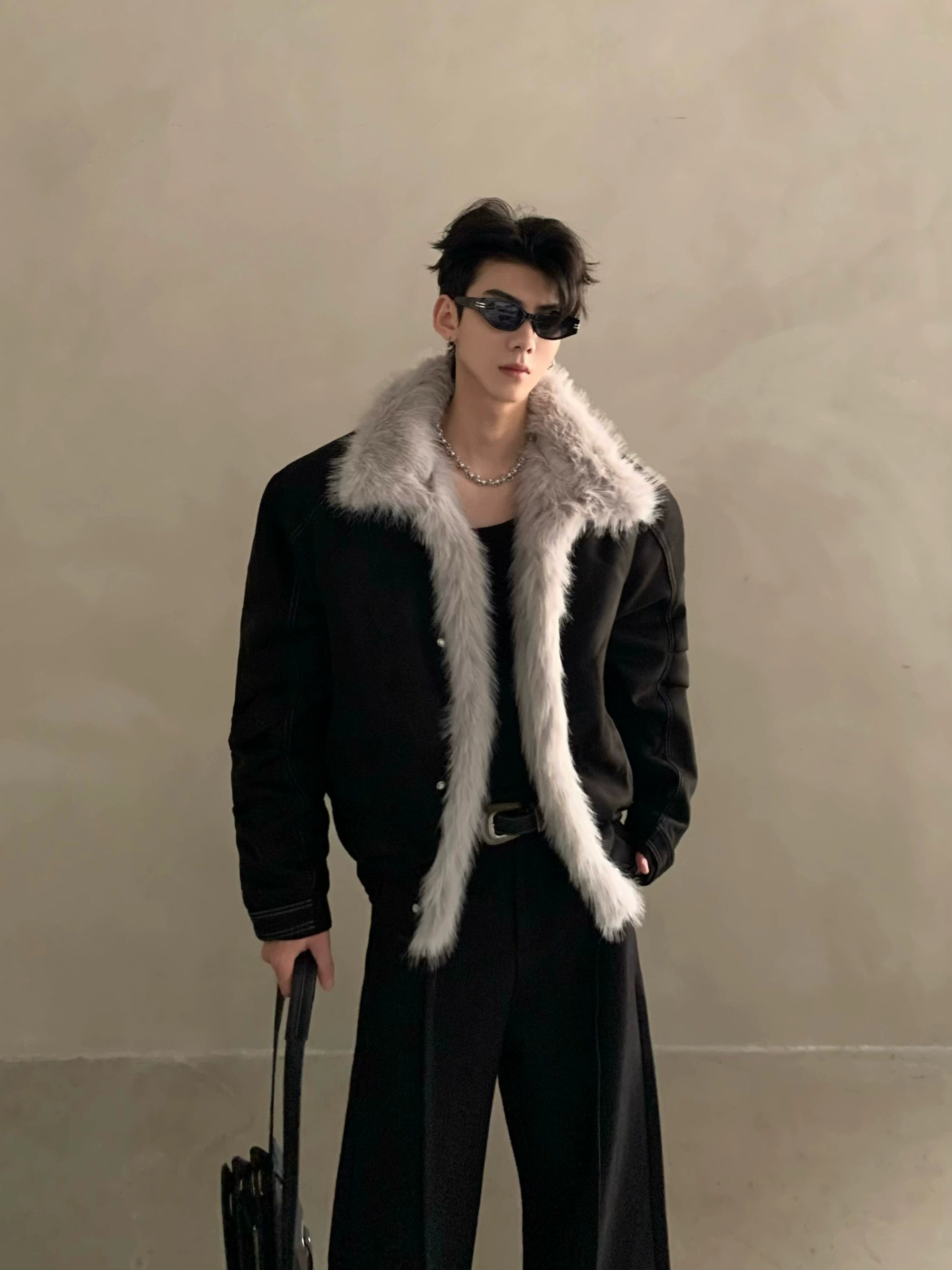 Winter niche high-end sense big fur collar seat mountain carving coat men's thickened warm jacket cotton clothes tide