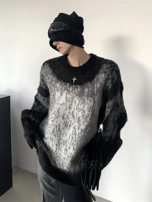 [AUTUMNWIND] BLACK AND WHITE CLASH DESIGN KNIT SWEATER ST968
