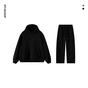 Kangaroo sweater heavy double stream spinning terry cloth stacked wear velvet kangaroo hooded sweater set