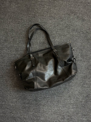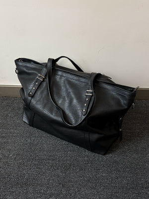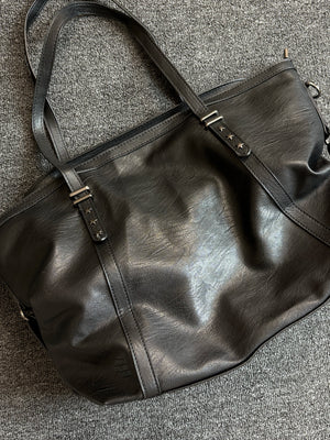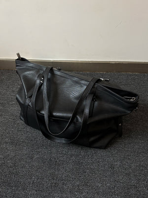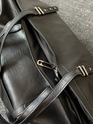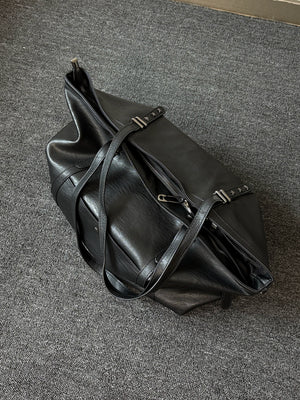 Original black pleated leather large capacity tote bag commuting men's soft leather shoulder bag
