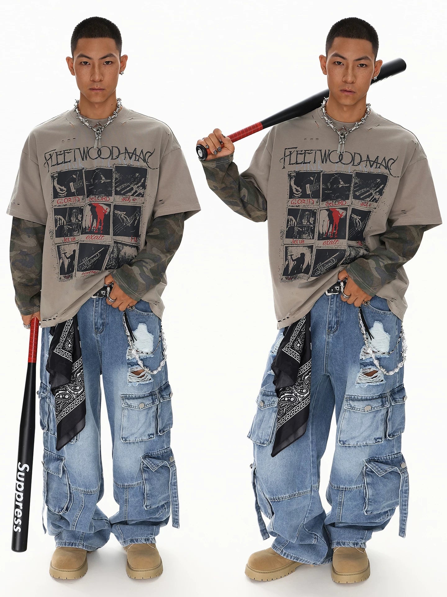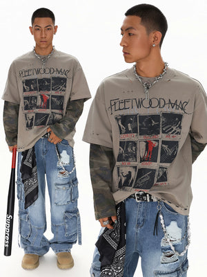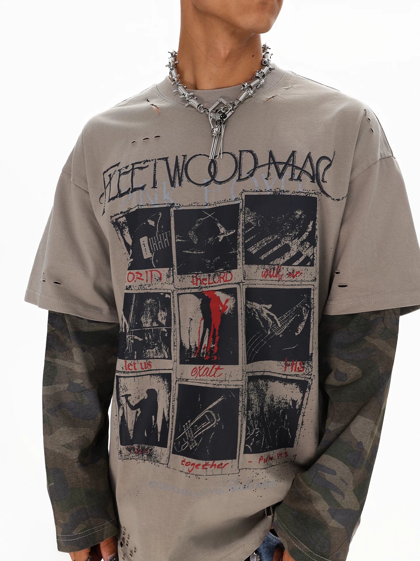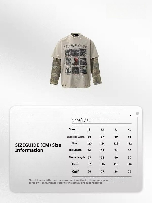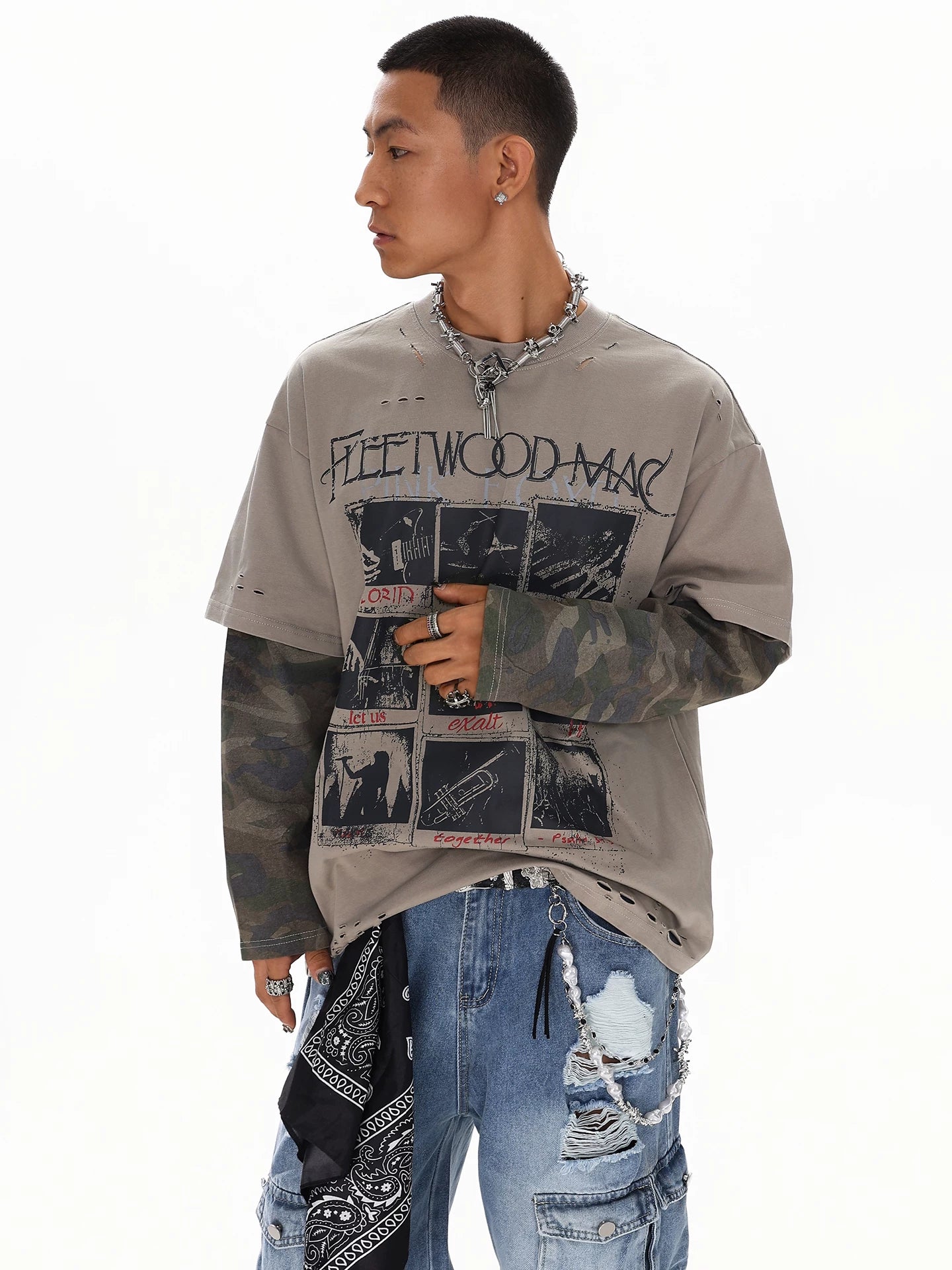 American high street camouflage patchwork long sleeve t-shirt for men - new spring 2026 trendy faux two-piece top sinclub3491
