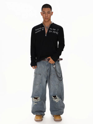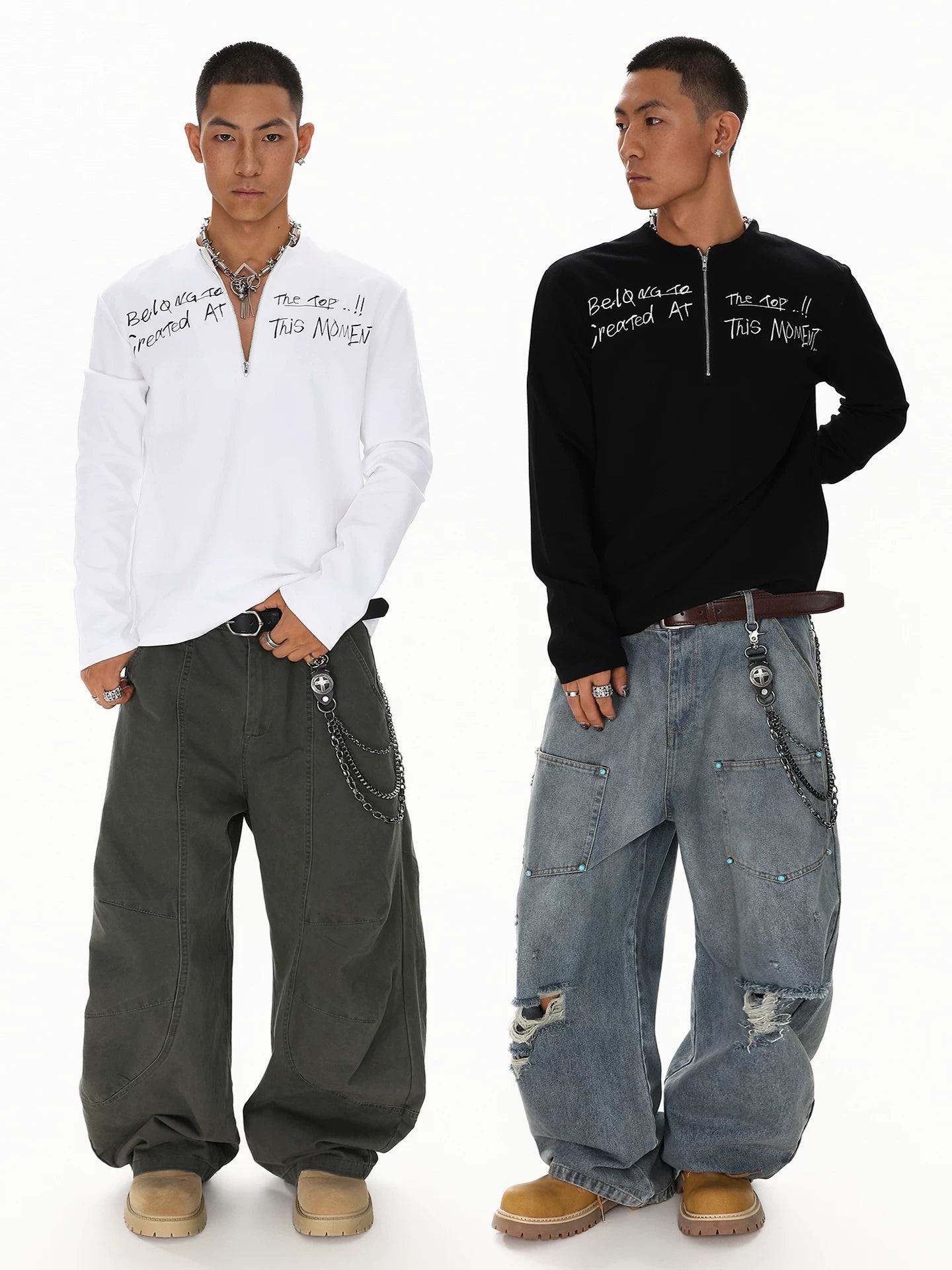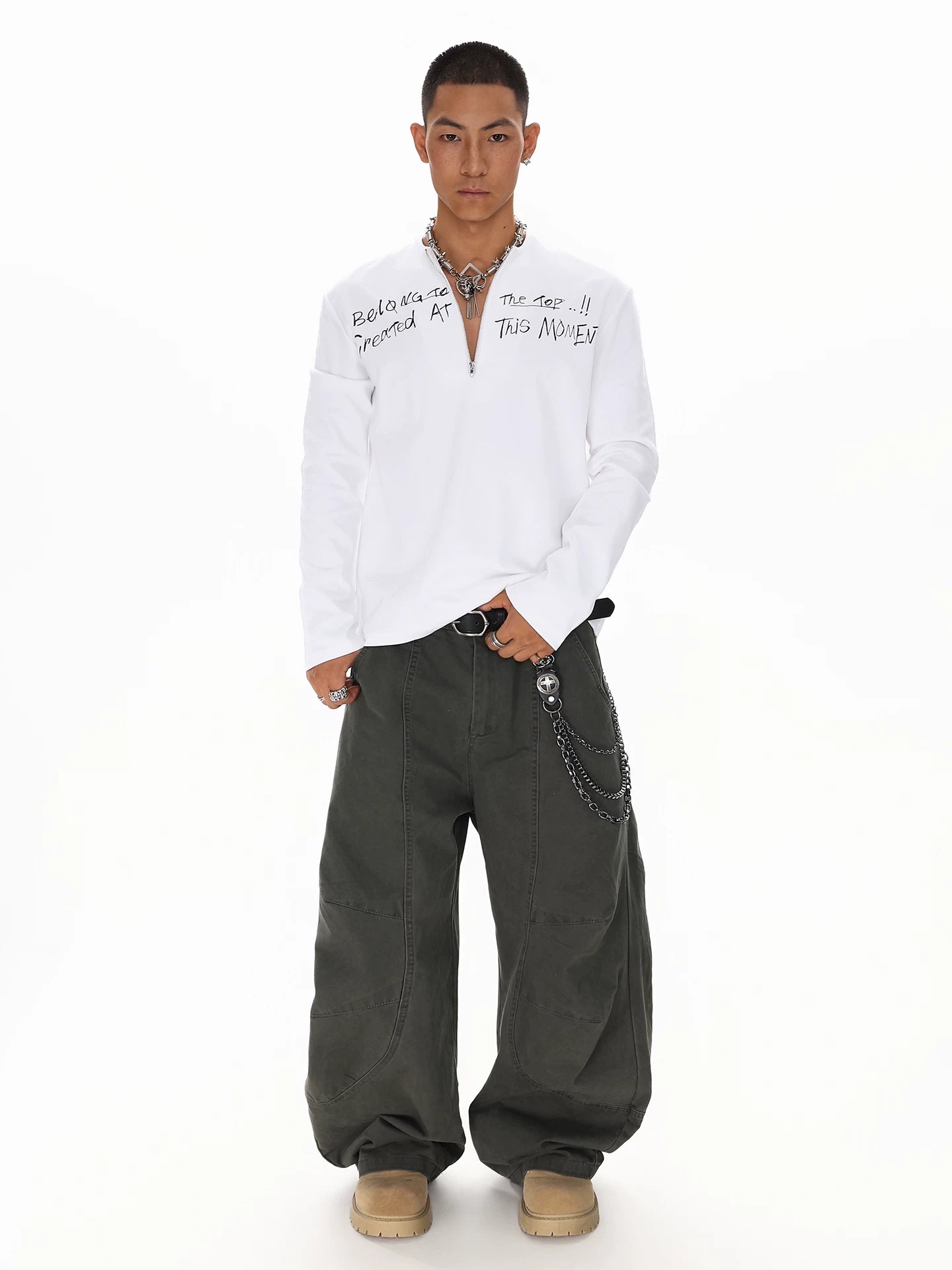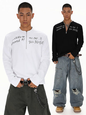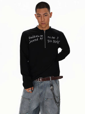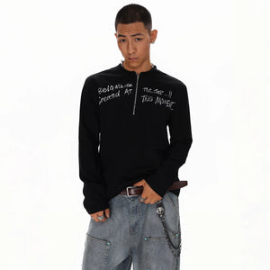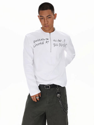 Old money style half-zip letterprintinglong sleevest-shirt men 2026 springnew arrivalcasualtops sinclub6489