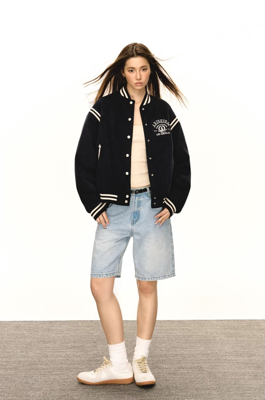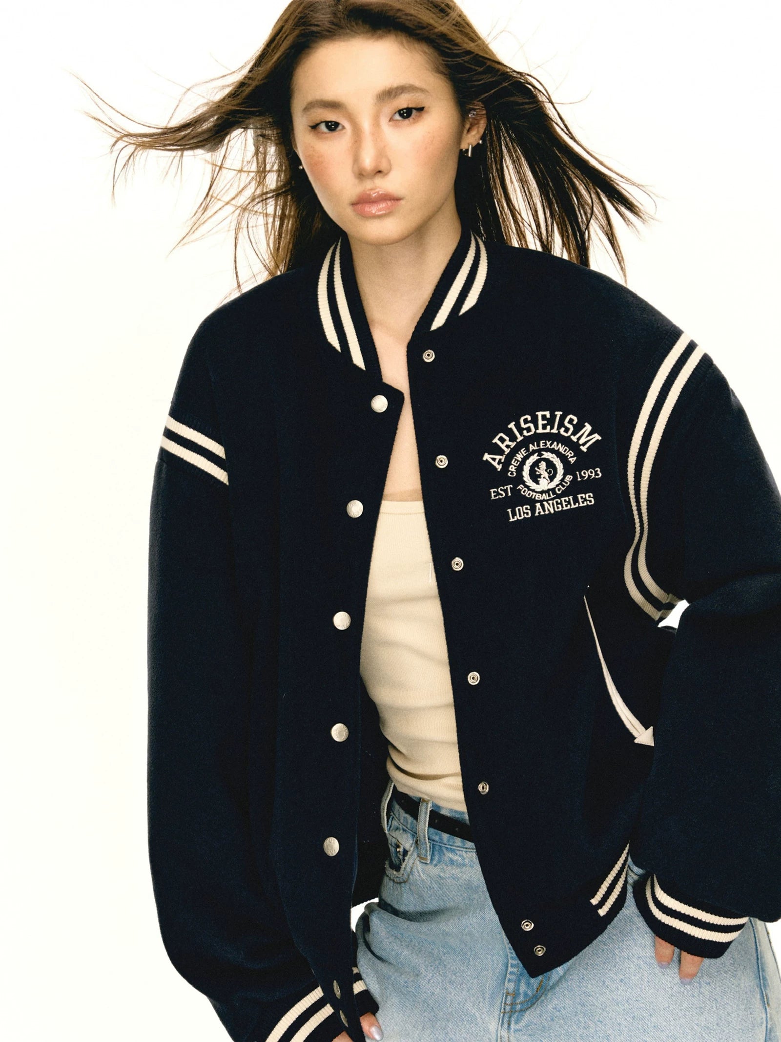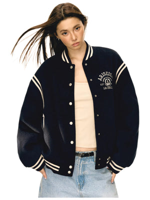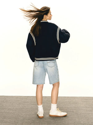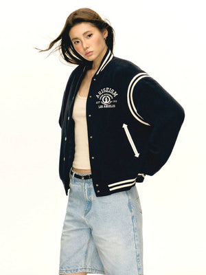 American retropreppy stylepatchwork baseball uniform outwear women's cotton jacket WY005