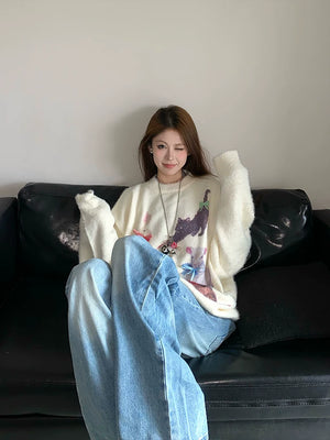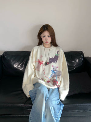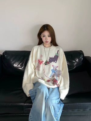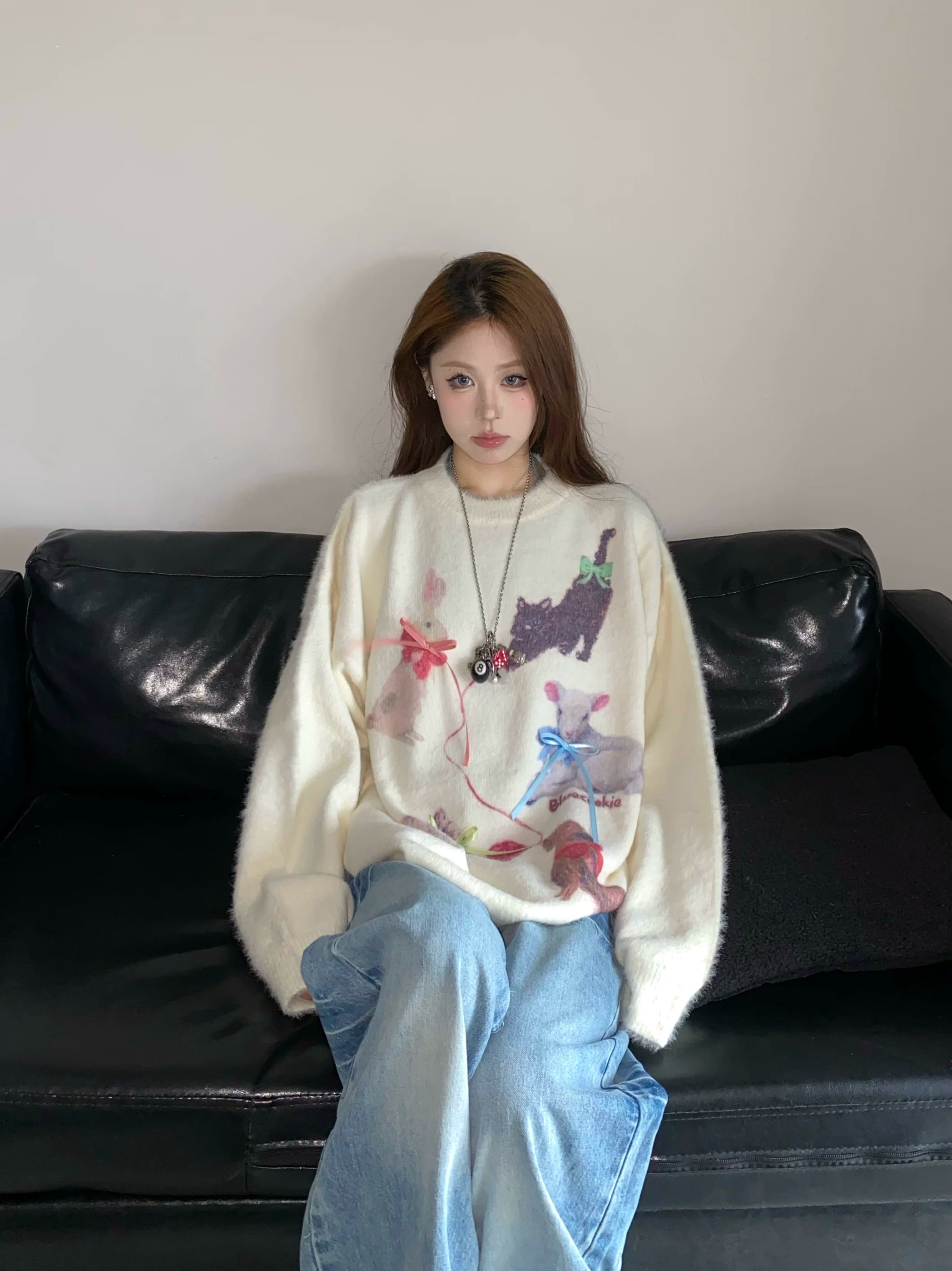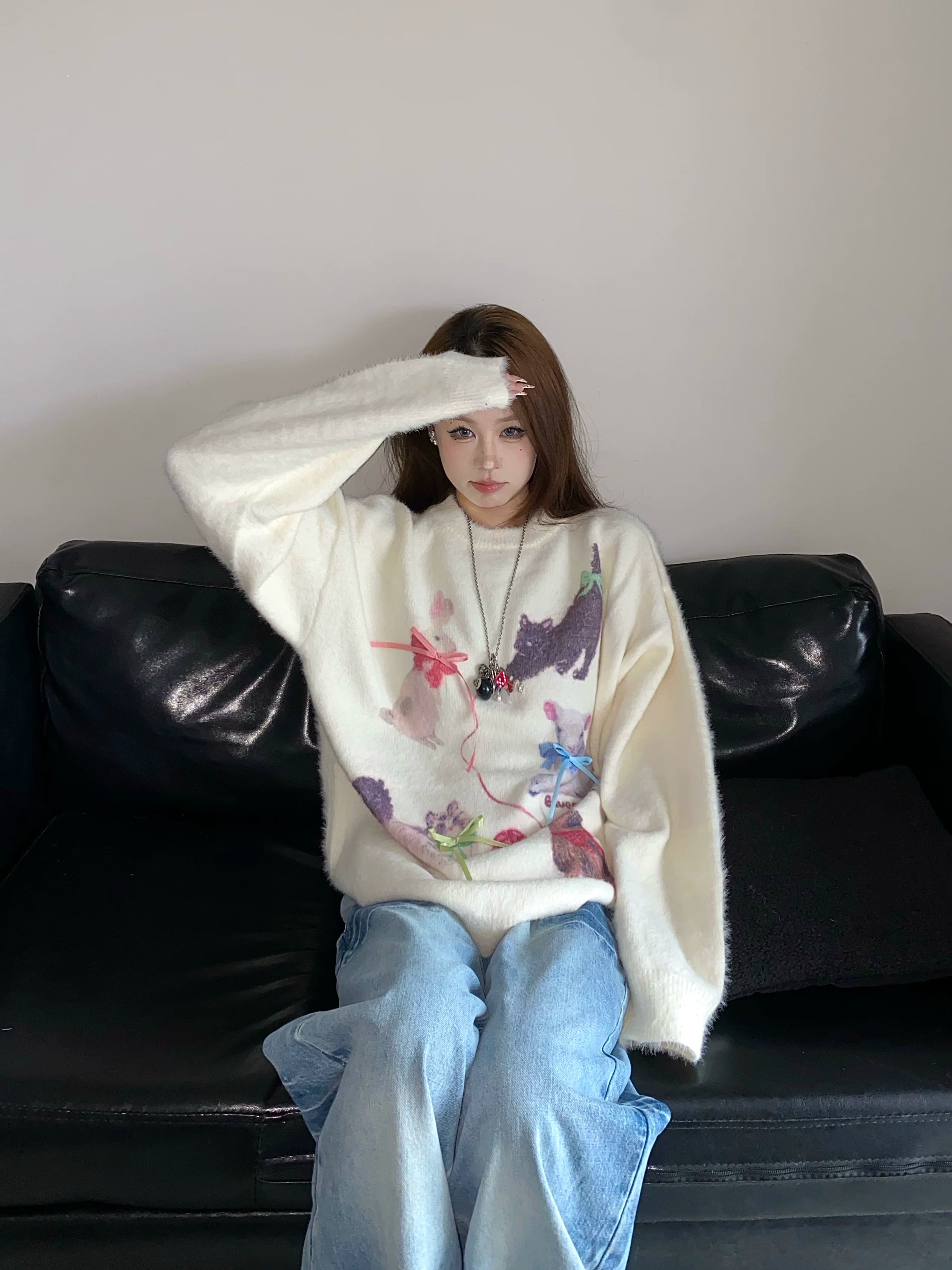 Fall and winter sweet and cool atmosphere imitation mink wool round neck pulloversweater women's looseknittingtops XX5