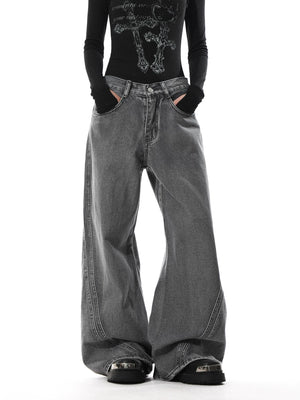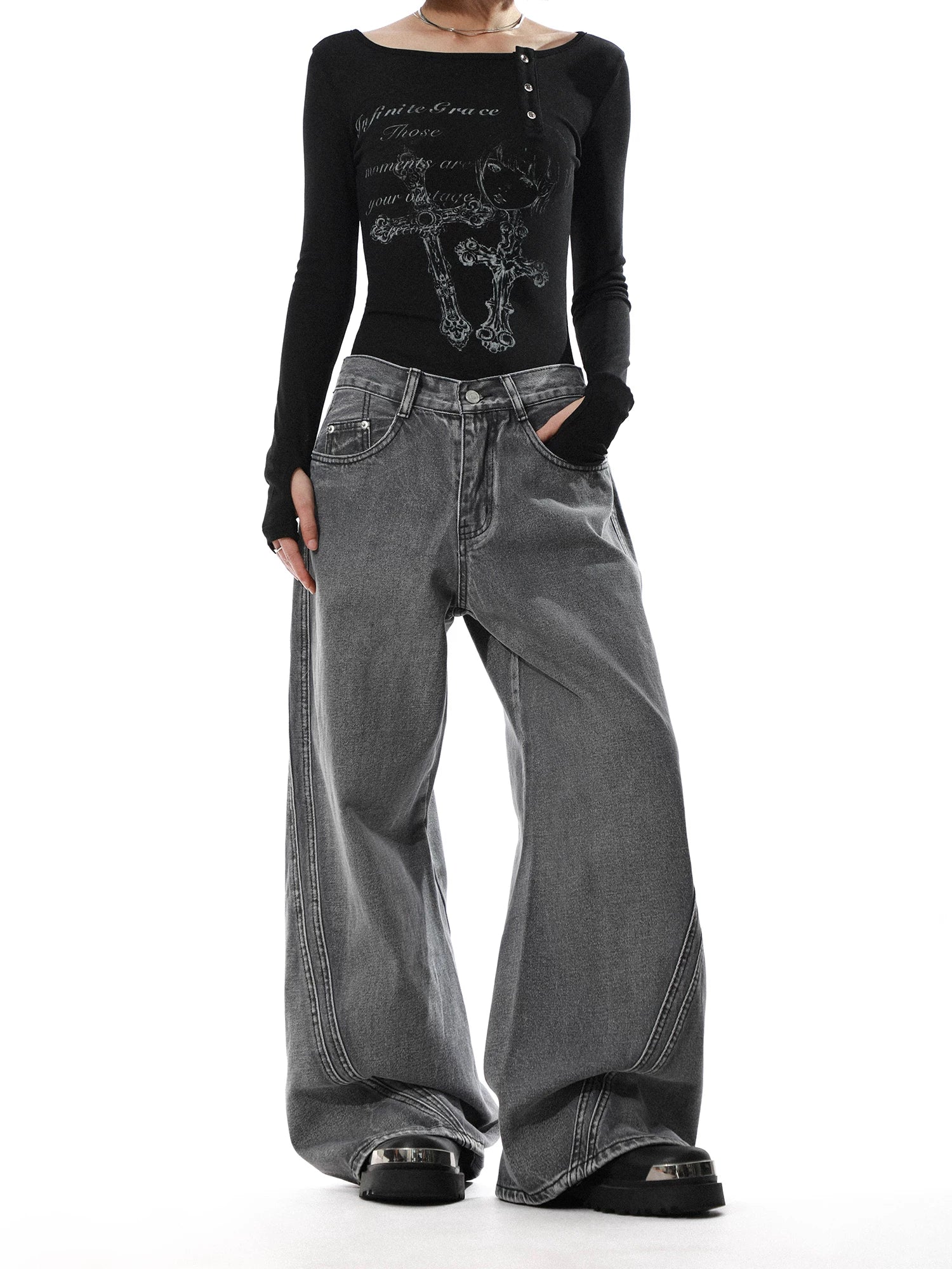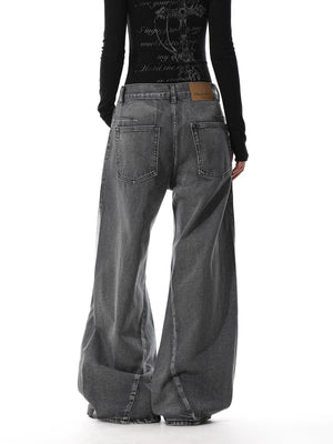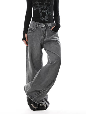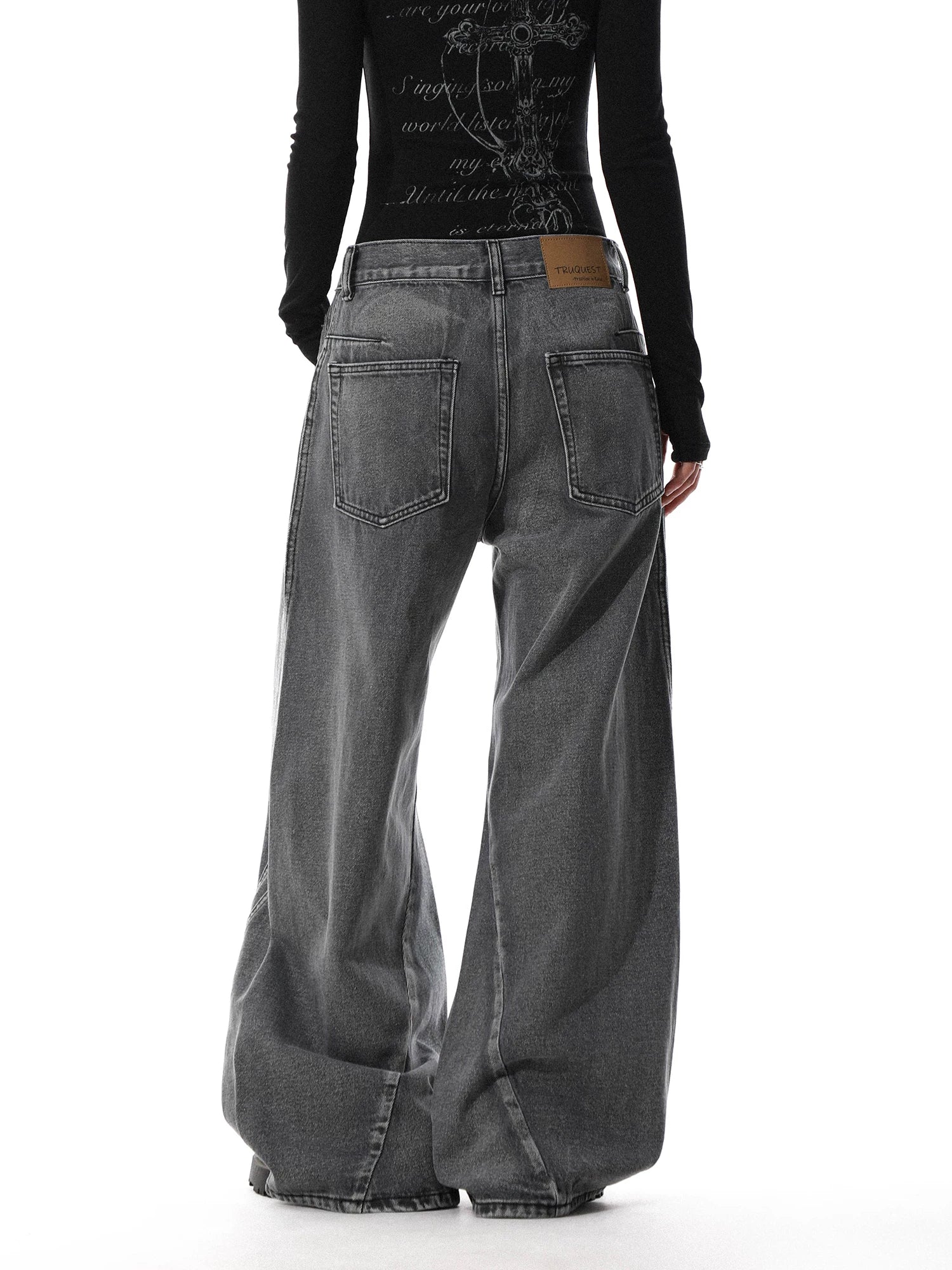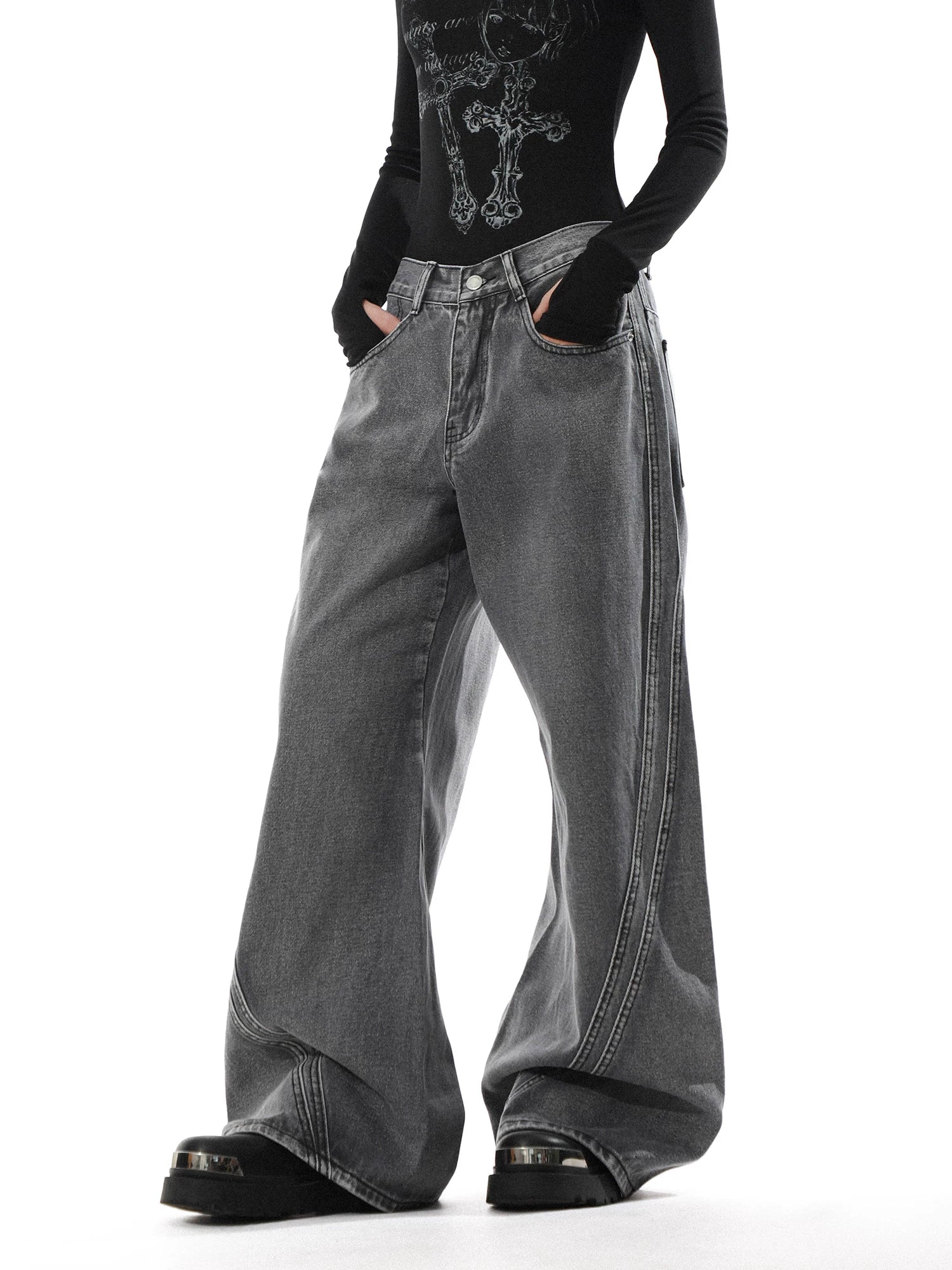 American retro distressed washed wide leg jeans - men's designer loose fit couple's trendy pants sinclub7985