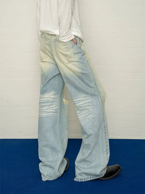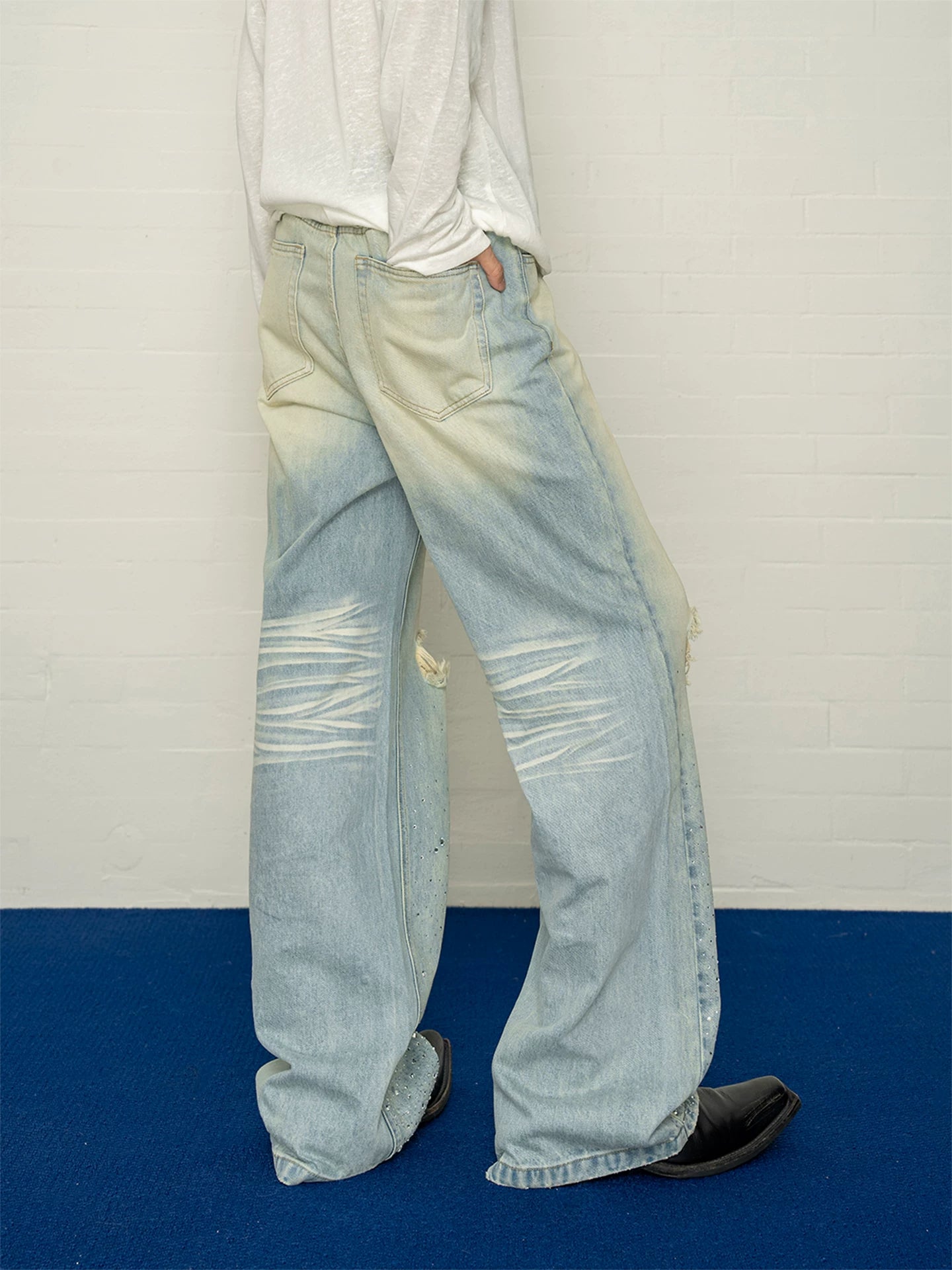 Starry heavy industry hot diamond polished white gradient hole straight-legjeanslooseloose pants for men sinclub5990