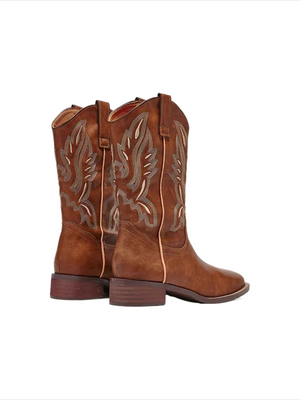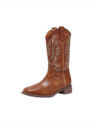 Genuine leather retroembroider western cowboy boots square toe thick heel knee sock knight boots casual men's leather boots