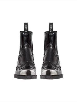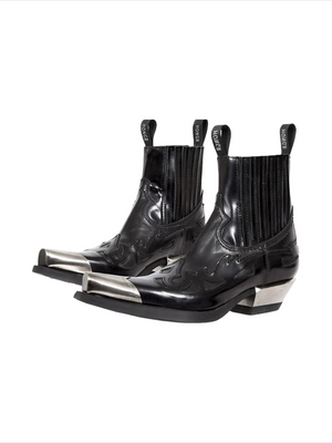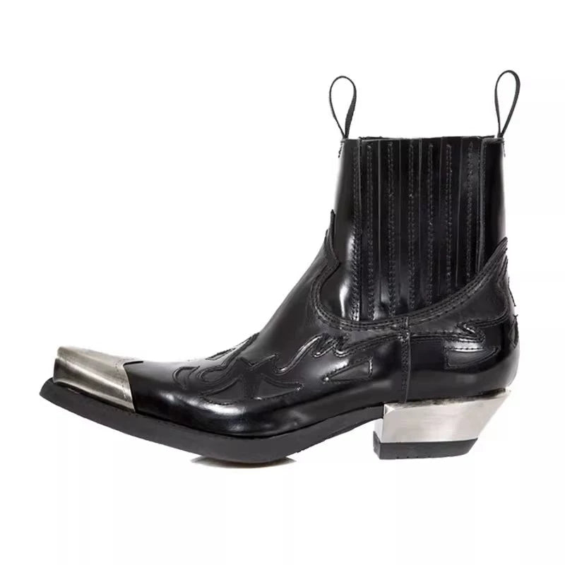 Handmade distressed genuine leather vintage metal toe cowboy boots square toe western chunky heel men's chelsea boots