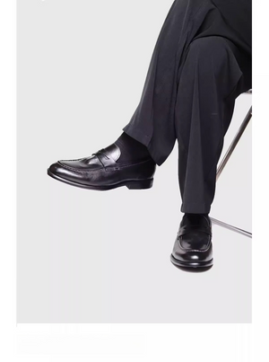 Yuppie retro loafersmen washed horsehide slip-on leather shoes casual pointed toe derby shoes
